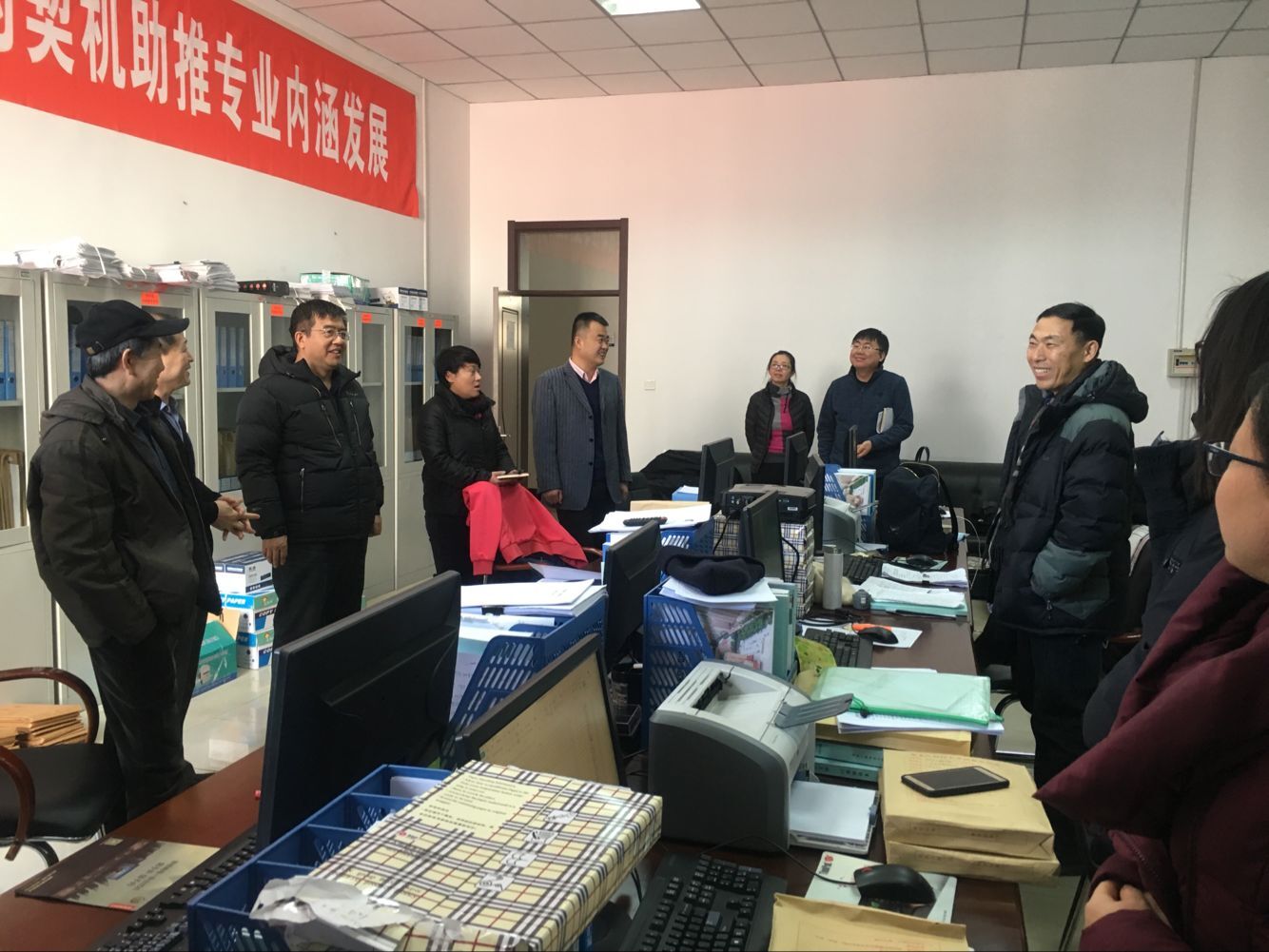 会后,全体班子成员集体探望了假期加班工作,推进矿物加工专业认证工作组全体成员。