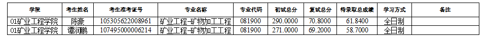 pa集团官网入口2025年硕士研究生招生考试(矿业工程)第四次调剂待录取名单