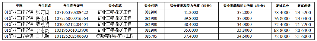 pa集团官网入口2025年硕士研究生招生考试(矿业工程、资源与环境-矿业工程)第三次调剂复试成绩