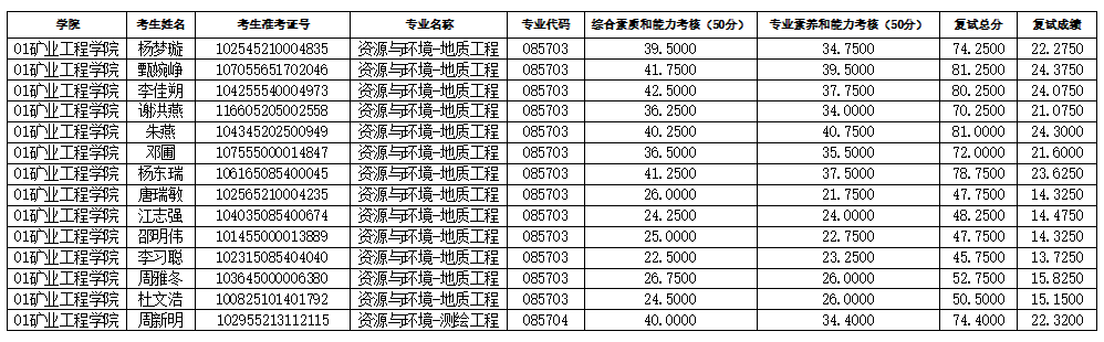 pa集团官网入口2025年硕士研究生招生考试(资源与环境-地质工程)第三次调剂及(资源与环境-测绘工程)第四次调剂复试成绩