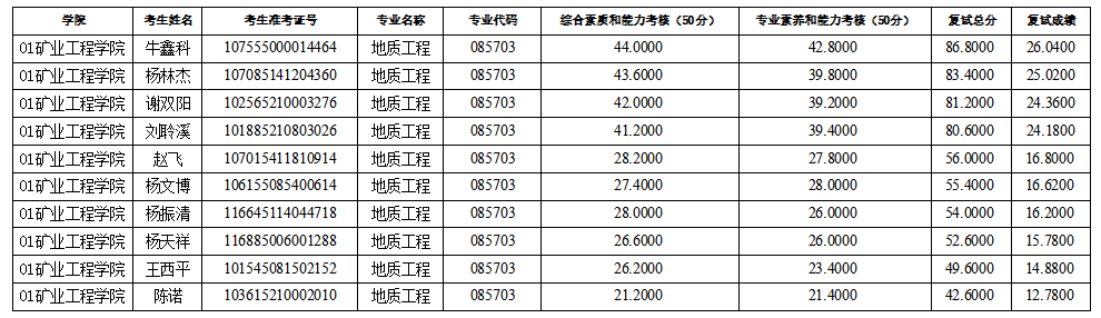 pa集团官网入口2025年硕士研究生招生考试(资源与环境-地质工程)第二次调剂复试成绩