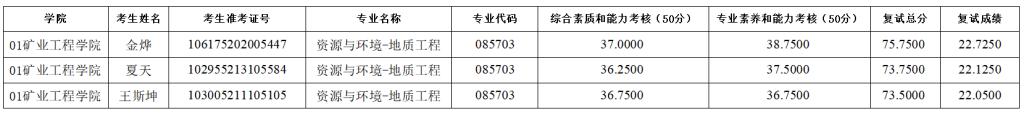 pa集团官网入口2025年硕士研究生招生考试(资源与环境-地质工程)第五次调剂待录取名单