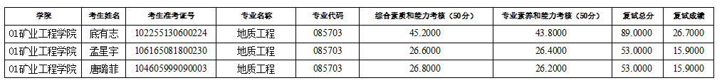 pa集团官网入口2025年硕士研究生招生考试(资源与环境-地质工程)第一次调剂待录取名单