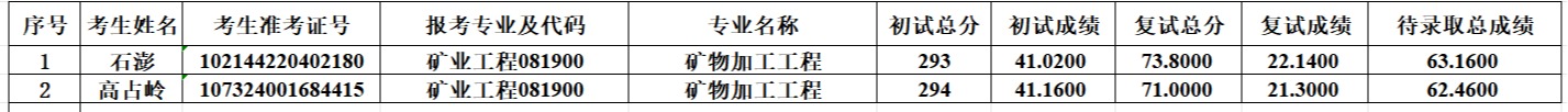 pa集团官网入口2024年硕士研究生考试第七批调剂复试(矿物加工工程)待录取考生名单