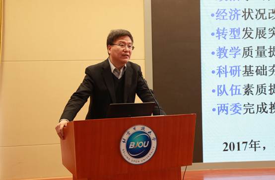 褚宏启总结了学校2017年工作,部署了2018年重点工作,并做了题为《夯实基础,追求卓越》的报告。他强调,学校正处在转型发展、深化改革的历史时期,落实好市委市政府要求,办好伟德bv国际体育、建立健全市民终身学习体系,是我们的历史使命,责任担当,也是我们面临的重大历史性机遇。我们的改革转型,要坚持科学、民主、法制的原则,坚持质量立校、开放兴校、人才强校的战略,用智力做好顶层设计,用毅力坚持转型发展,用实力做好现代管理,逐步解决矛盾问题,提升教学、科研、管理质量效益,在教育教学质量、教学内容、教学方法的改革方面加强探索和创新,在信息技术与教育教学的深度融合上下更大的功夫,以良好精神状态和忘我的工作精神圆满完成党的十九大和学校党员大会提出的各项工作任务。