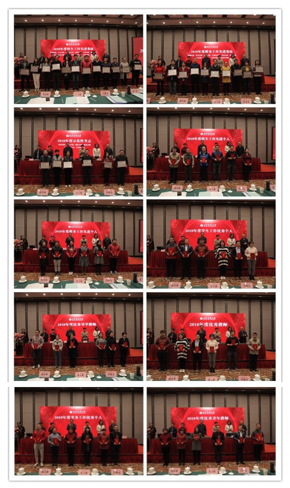 大会同时进行了2018年度系统工作表彰,包括招生工作先进集体、教务工作先进集体、示范性考点、招生工作先进个人、教务工作先进个人、考务工作优秀个人、学生工作优秀个人、优秀导学教师、优秀教师、优秀青年教师在内的十个奖项系统单位获奖单位和个人代表上台领取了奖牌和证书。