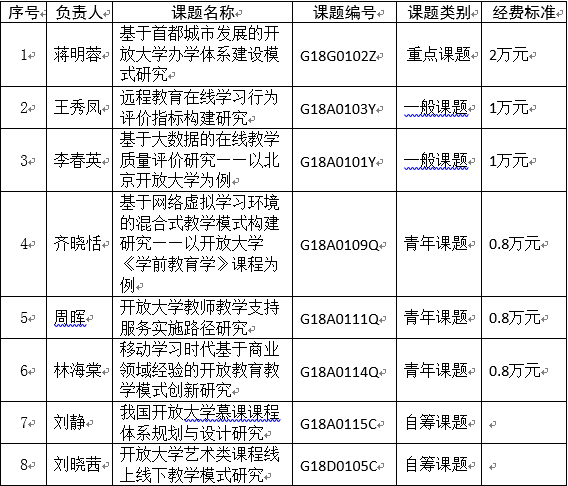 近日,国家开放大学印发《关于国家开放大学分部2018年度科研课题立项的通知》,伟德官网有8项课题获批立项,其中重点课题1项、一般课题2项、青年课题3项、自筹课题2项,特向8位课题负责人及课题组表示祝贺。国家开放大学科研课题每两年申报1次,伟德官网本次获批课题较2016年上涨了60%。