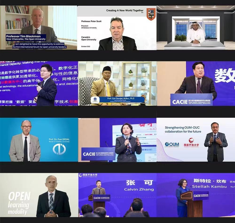 本次论坛作为第23届中国国际教育年会暨展览平行论坛之一,由国家开放大学发起并主办,以“共创未来:应对新挑战的开放教育数字化行动”为主题。来自全球10多个国家和地区的600多名代表线上线下参会。教育部国际合作与交流司副司长、一级巡视员方军和联合国教科文组织驻华代表处主任夏泽翰分别致辞。来自中国、加拿大、英国、阿联酋、印尼、土耳其、马来西亚、哥斯达黎加等8个国家的11位开放大学校长作了主旨发言,从教育新型基础设施建设、数字资源供给与建设标准、学习过程行为分析、各国开放大学所关注的优先领域等不同层面分享了应对新挑战的开放教育数字化行动探索与实践。国家开放大学党委书记、校长荆德刚以《深入推进教育数字化 建设数字化大学》为题作了主旨发言,提出了数字化大学建设的目标、路径和重点工作,发起了“一带一路”开放教育发展联盟倡议。国家开放大学党委委员、副校长李松发出“世界开放大学发展指标体系”专题研究邀请。