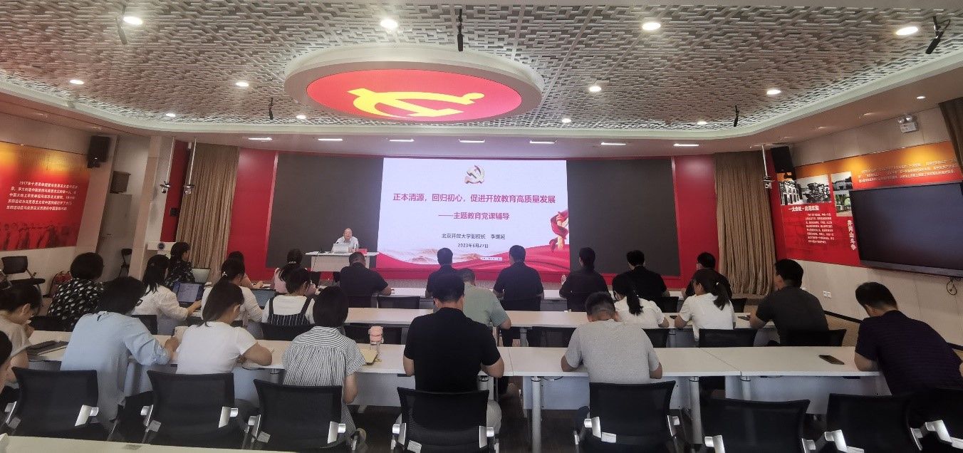 6月27日,副校长李继延以“正本清源、回归初心,促进开放教育高质量发展”为题,为教务处、人文与教育学院、商学院、城市管理学院、科学技术学院、事业发展部、国开业务部等部门和学院的党员干部讲主题教育专题党课。党课围绕主题教育“学思想、强党性、重实践、建新功”总要求,对深入学习贯彻习近平新时代中国特色社会主义思想、扎实推动教育强国建设进行了生动阐释,立足学历教育办学实际,从当前教育面临的大形势、伟德官网的“正本清源之战”、当前开放教育面临的挑战、今后学历教育发展重点工作等四个方面进行了讲解,提出注重人才培养质量、突出开放教育“六随”办学特色、加强学历教育资源整合优化、加强办学风险防控、加强两级办学体系建设、构建终身学习体系等六个方面工作要求。引导党员干部始终坚持高质量发展的理念和“以学生为中心”的教育情怀,用实际行动助推学校高质量发展。