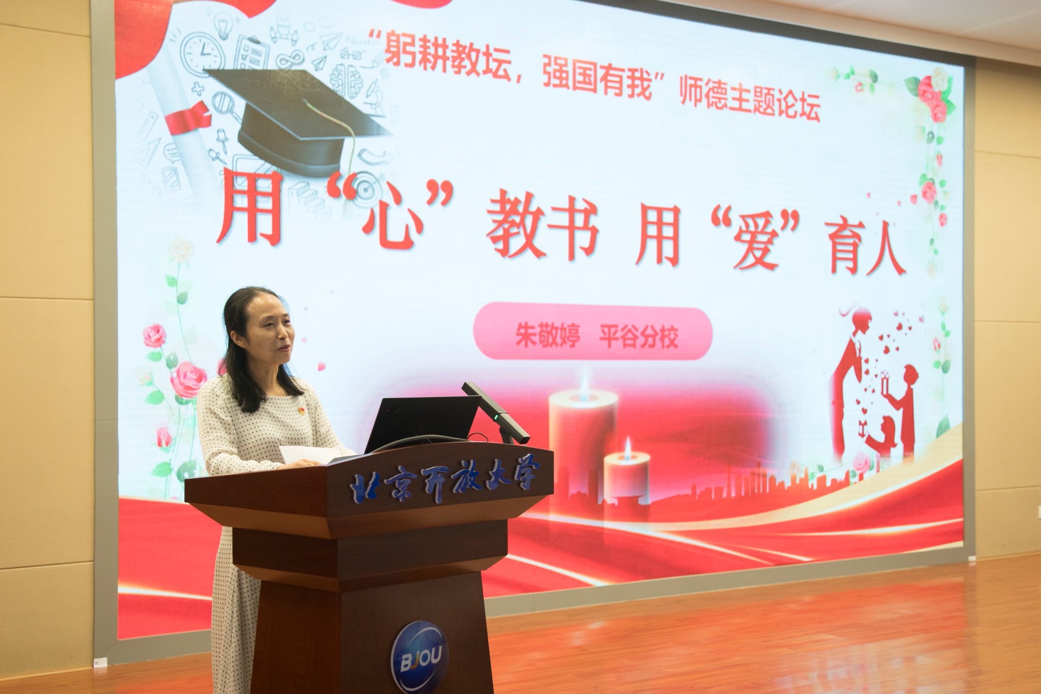 平谷分校教师朱敬婷以“用‘心’教书,用‘爱’育人”为题,讲述了自己对教师“立德树人”的理解,强调教师既要坚定教育信仰,为人师表,率先垂范,又要做学生的良师益友,始终怀有仁爱之心,有爱才有真教育。