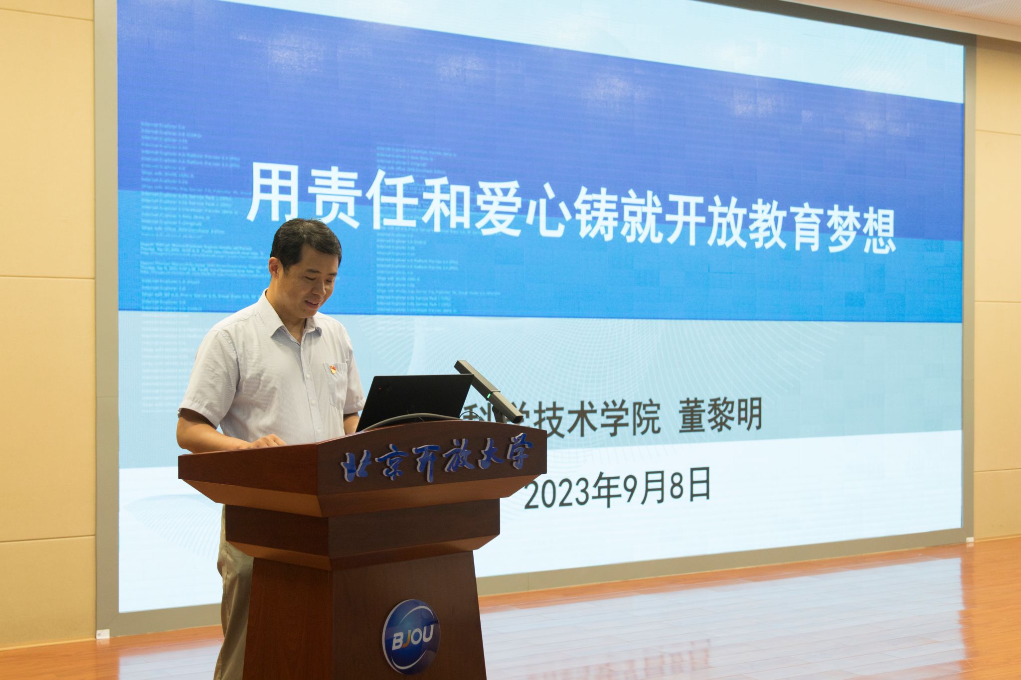 科学技术学院教师董黎明以“用责任和爱心铸就开放教育梦想”为题,分享了发生在自己身边的点滴故事。朴实平凡瞬间所映射出的是倾注责任与爱心关心每一个学生,体现了教师对学生的关心、对教育事业的热爱、对社会责任的担当,是优秀师德的生动呈现。