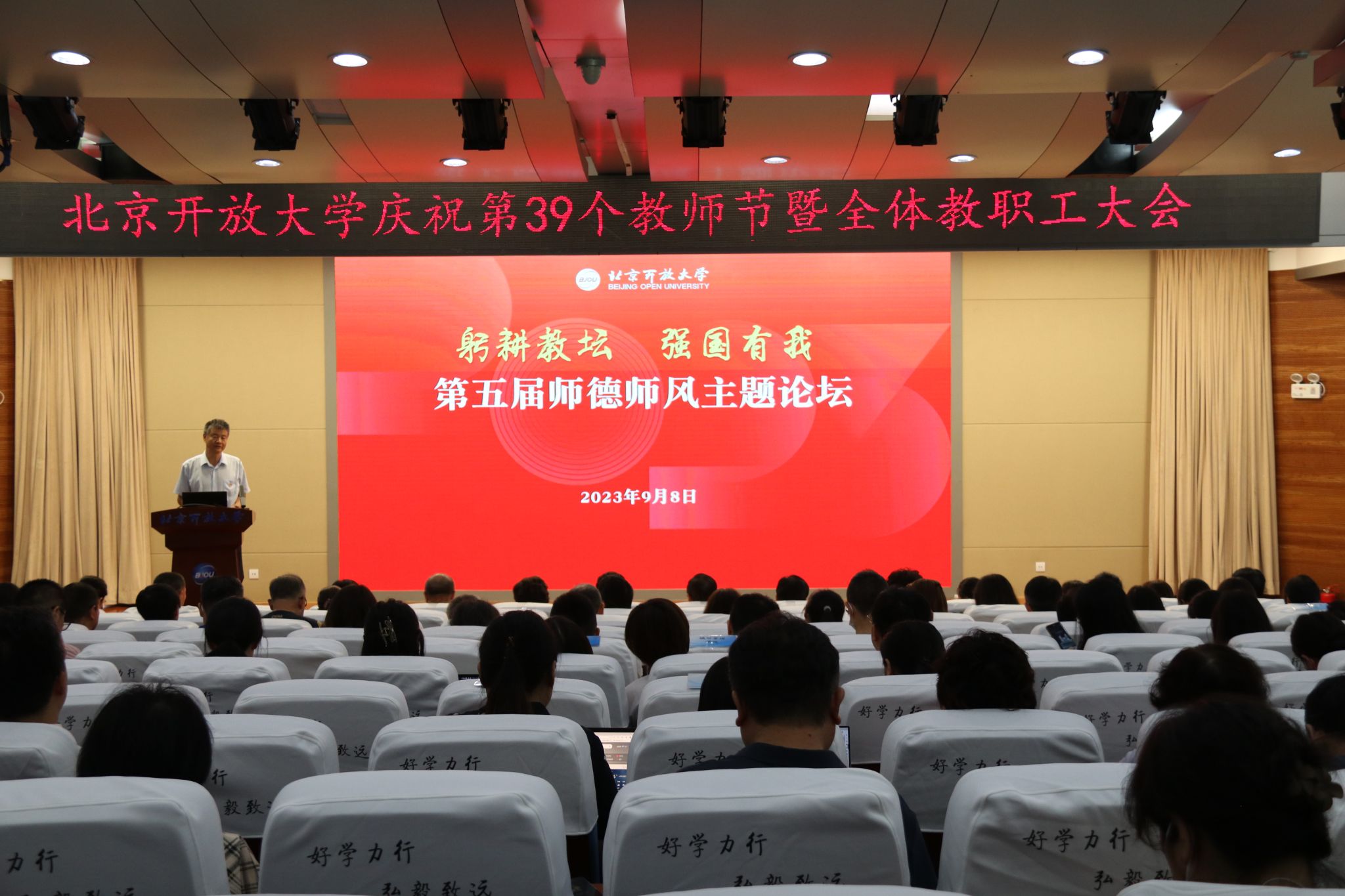 恰逢第39个教师节之际,此次“躬耕教坛,强国有我”师德师风主题论坛暨教师节表彰大会,充分展示了学校教师爱党爱国、崇德修身、仁爱奉献的精神风貌,强化了广大教师推动学校高质量发展的使命担当。
