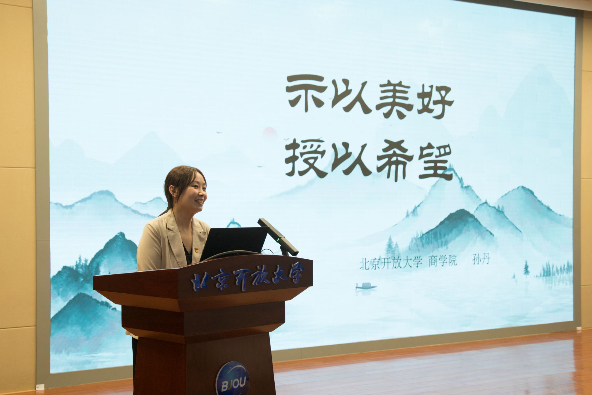 商学院教师孙丹以“示以美好,授以希望”为题,讲述了自己对于立德树人、为师之道的理解,既要做心怀国之大者,又要做立德树人的能者,通过对教学方式和策略不断尝试创新,以求适应学生学习规律,点燃学生心灵里的“希望”之火。