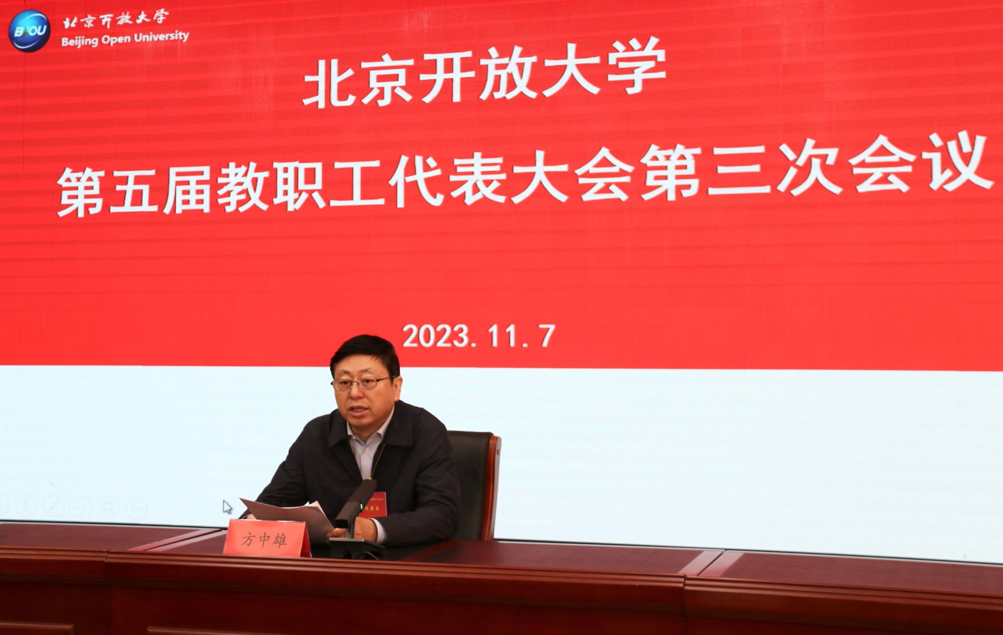党委书记方中雄在讲话中指出,本次会议是一次发扬民主、振奋精神、凝心聚力的大会,对完成好当前及今后一个时期的各项任务,推动学校事业高质量发展具有非常重要的意义。学校教育教学方面取得的成绩,离不开每一位教职工的辛勤付出,要将学校发展放到服务和融入新时代首都发展的大背景下来考量,充分认清学校高质量发展过程中存在的突出问题,切实增强责任感、使命感和紧迫感,抢抓机遇、积极作为。专业技术职务评聘工作是学校建设发展的重要组成部分,关系到全体教职工切身利益,修订《办法》势在必行。要通过完善制度,进一步激励广大教职工更好地履行职责,提高自身素质和能力,推动学校事业发展,提高学校的整体竞争力。