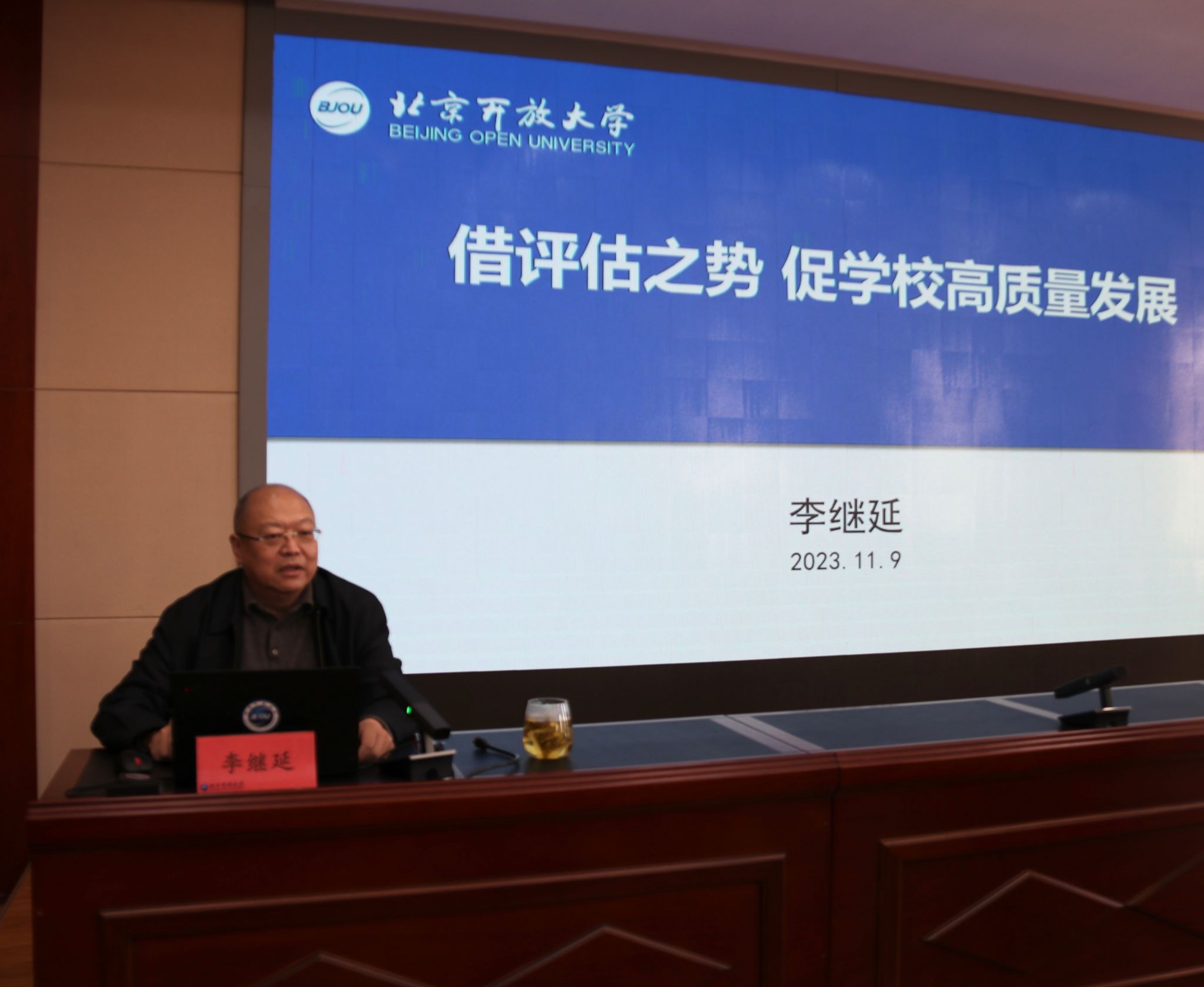 李继延副校长以“借评估之势,促学校高质量发展”为题,对伟德官网从接到国家开放大学办学评估通知开始至今所开展的评估工作进行回顾总结。他指出,伟德官网积极响应总部评估工作,2022年3月,由学校党委组成迎评领导小组,设立迎评工作办公室,正式启动迎评工作,在全校范围内召开系列工作推进会,扎扎实实地开展了32家学习中心办学评估。2023年7月出台《国家开放大学北京分部办学评估迎检工作方案》,确定了入校迎检工作的组织分工、主要任务及进度安排,对各部门及工作组提出了具体要求,将迎评工作小组分为文字材料组、支撑材料组、校园文化和校园环境建设组、宣传报道组、数字化展示建设组共五个小组,分别由校领导牵头,确保各项工作切实落实,迎评工作进入攻坚克难阶段。李继延副校长最后强调了当前迎评工作存在的几点问题和后续的工作重点与要点。