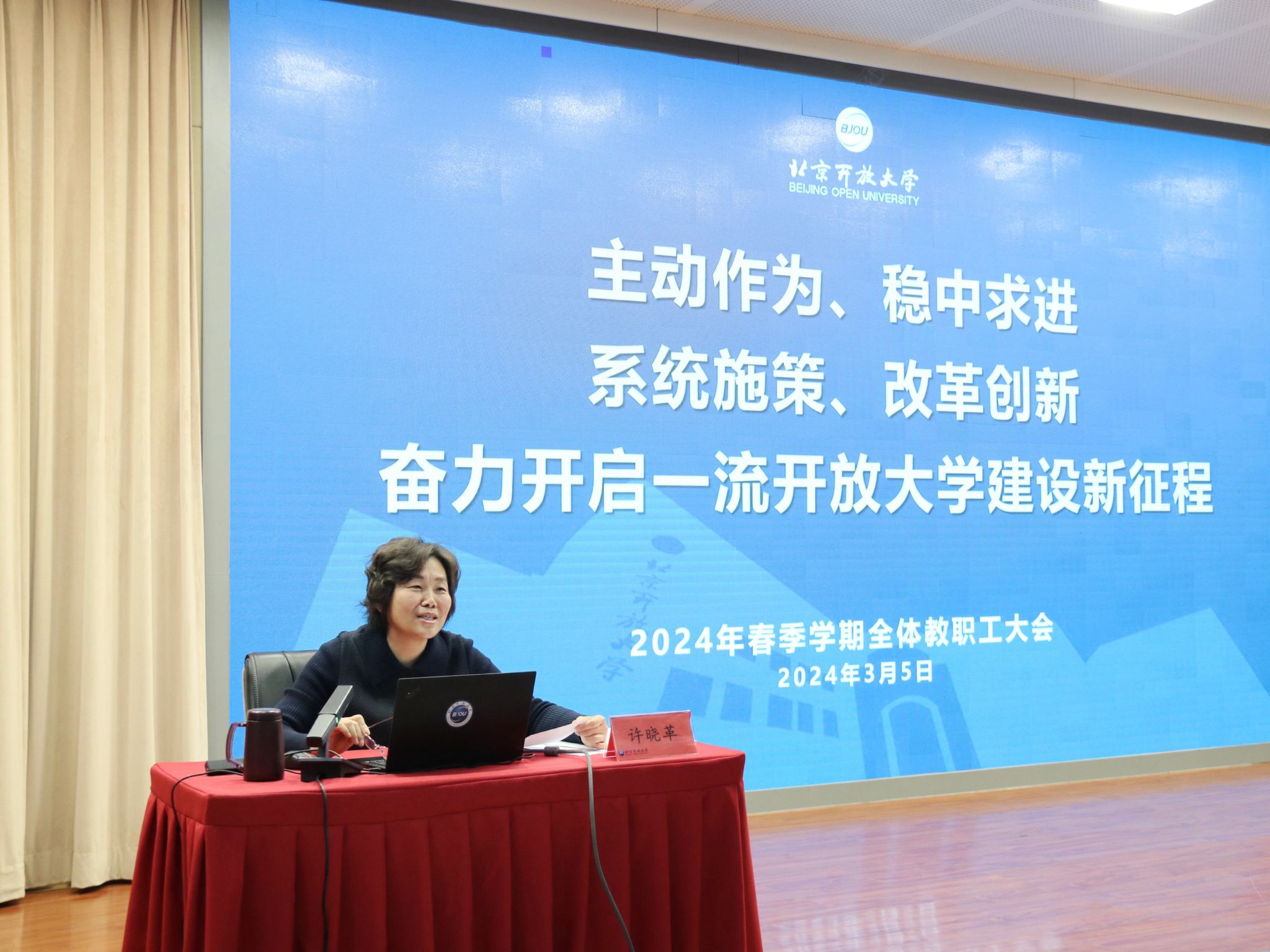 会上,党委副书记、校长许晓革以“主动作为、稳中求进,系统施策、改革创新,奋力开启一流开放大学建设新征程”为主题,全面总结学校2023年工作,分析当前形势,部署2024年重点任务。许晓革指出,2023年,在学校党委坚强领导下,全体教职工凝心聚力、务本求实,高标准、高要求完成了各项目标任务,取得了较好的成效。
