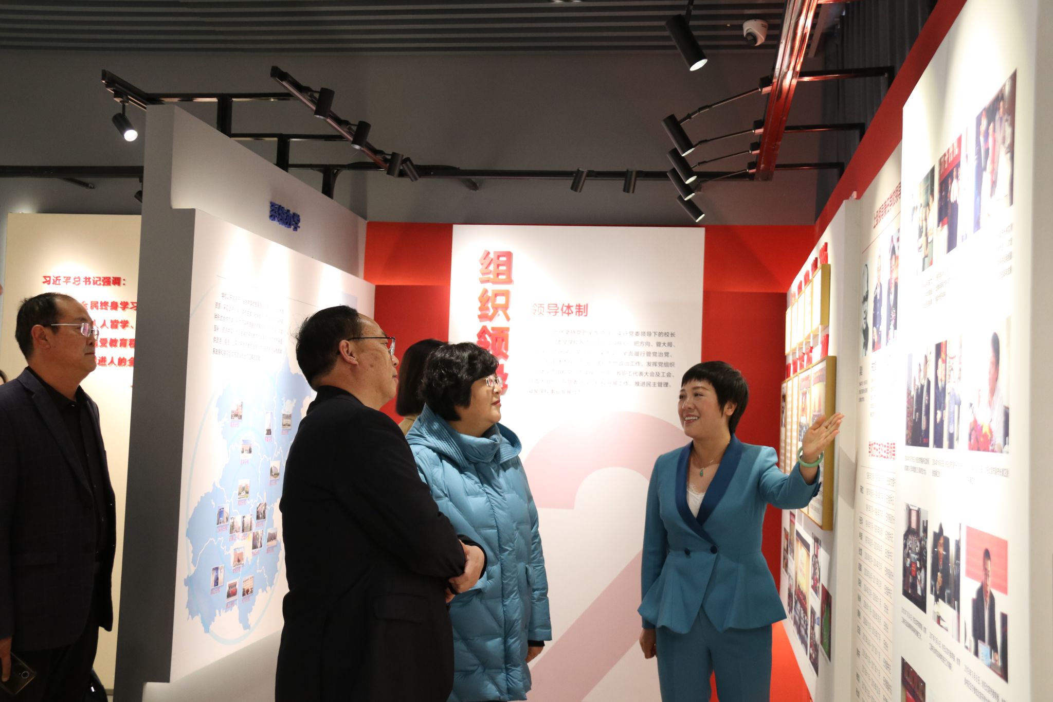 座谈会后,青海开放大学一行参观了学校办学历程展。