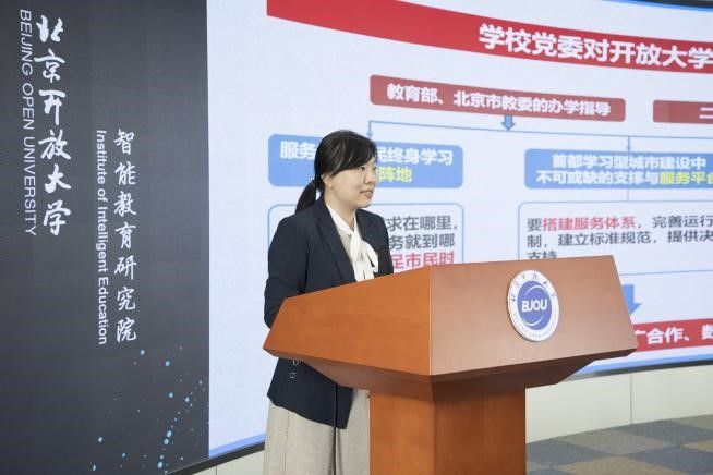 随后,教务处副处长白晓晶作《以应用场景为驱动,“数治”赋能开放教育高质量发展》主题汇报,系统介绍了伟德bv国际体育数据协同管理系统的开发路径,全面展示了数据驾驶舱、学业谱系图等在线功能。教务处副处长李蕾作《构建招生教务教学一体化平台,助力首都应用型人才培养》主题汇报,全面介绍了伟德官网自主业务信息化建设新突破,顺利建设招生教学教务管理一体化平台,实现了“以学生为中心”的全流程规范化管理。