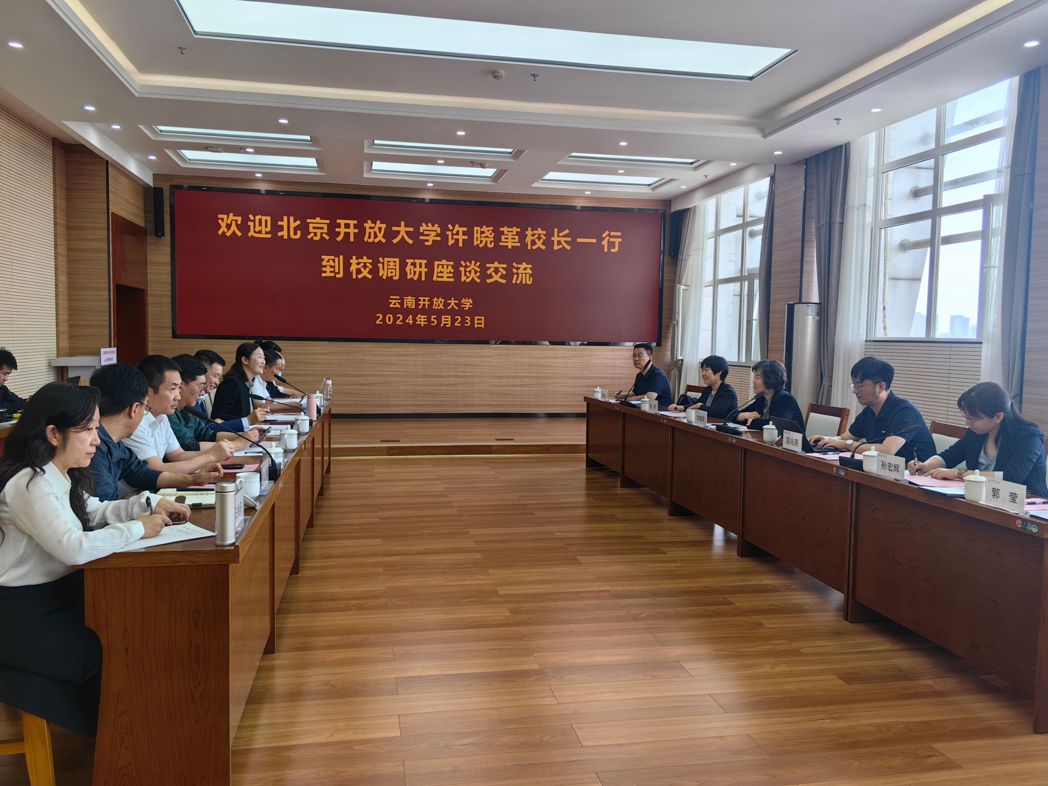 5月23日,学校党委副书记、校长许晓革,党委委员、副校长赵军及学历与非学历教育相关部门负责人一行赴云南开放大学进行调研。云南开放大学校长于干千、副校长顾丽姝及相关部门负责人参加了座谈交流。