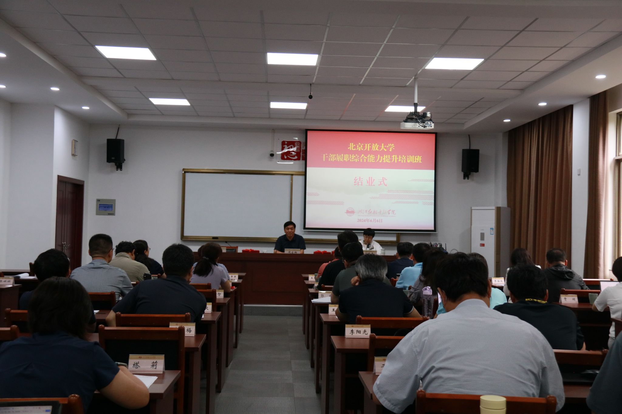 结业式上,3个学习小组分别汇报了对本次培训的感悟和收获。学校党委委员、纪委书记周启柏为参训干部颁发结业证书,并作总结讲话。他谈到,此次培训圆满结束,硕果累累,是一次寻根之行、赋能之行、聚力之行。他强调,中层干部作为组织的中坚力量,肩负着重要职责,要坚守“一心”、明白“二意”、认清“三位”、注重“四维”、做到“五心”、平衡“六个度”、用好“七个平台”、“八个抓手”,做全能“六边形战士”。他强调,大家要以此次培训为新的起点,坚守初心、联系实际、学以致用,以更加奋发有为的精神状态,求真务实、真抓实干的优良作风和专业履职的业务素养,投身到一流开放大学的建设中去,为学校高质量发展贡献力量!
