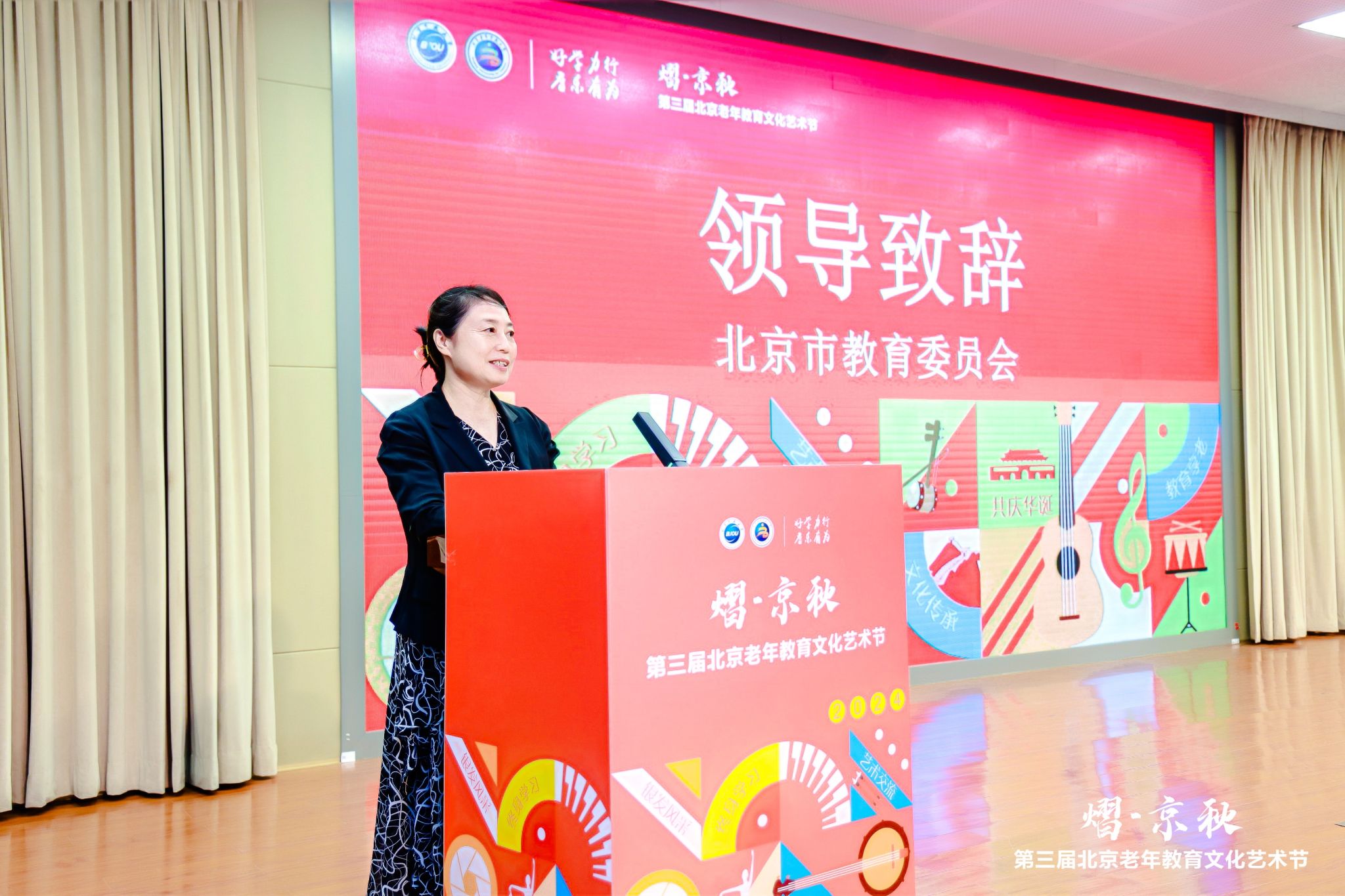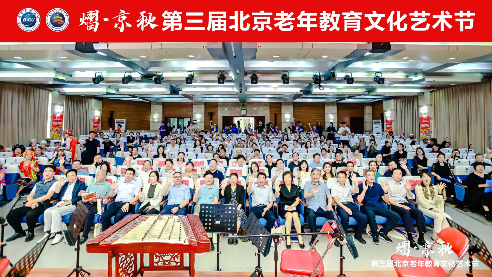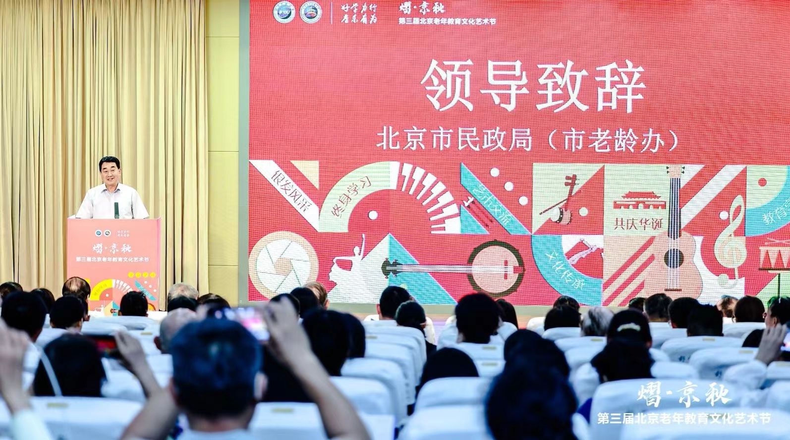 为深入贯彻党的二十大精神和习近平总书记关于老龄工作的重要指示精神,推进《北京市学习型城市建设行动计划(2021—2025年)》,引导激励全市老年人积极参与文化艺术教育活动,丰富老年人的精神文化生活,展示老年教育成果,“熠·京秋”第三届北京老年教育文化艺术节启动仪式于6月13日在伟德bv国际体育举行。本届艺术节由北京市教育委员会、北京市民政局(市老龄办)共同指导,伟德bv国际体育主办,北京市各区教委、各区民政局,北京市成人教育学会,北京老干部大学、北京教育老干部大学、北京军休老年大学、北京老年科技大学、北京市社区教育指导中心、北京老年开放大学各区分校、各区老教协、北京市老年学习示范校(点)、北京老年教育协作会成员单位、北京幸福颐养科技有限公司等支持举办。来自科技部、自然资源部、国家体育总局等十余家中央国家机关各部门的离退休干部局的领导以及各支持单位、主流媒体代表等百余家单位的领导和业务负责同志近300人参加了本次启动仪式。