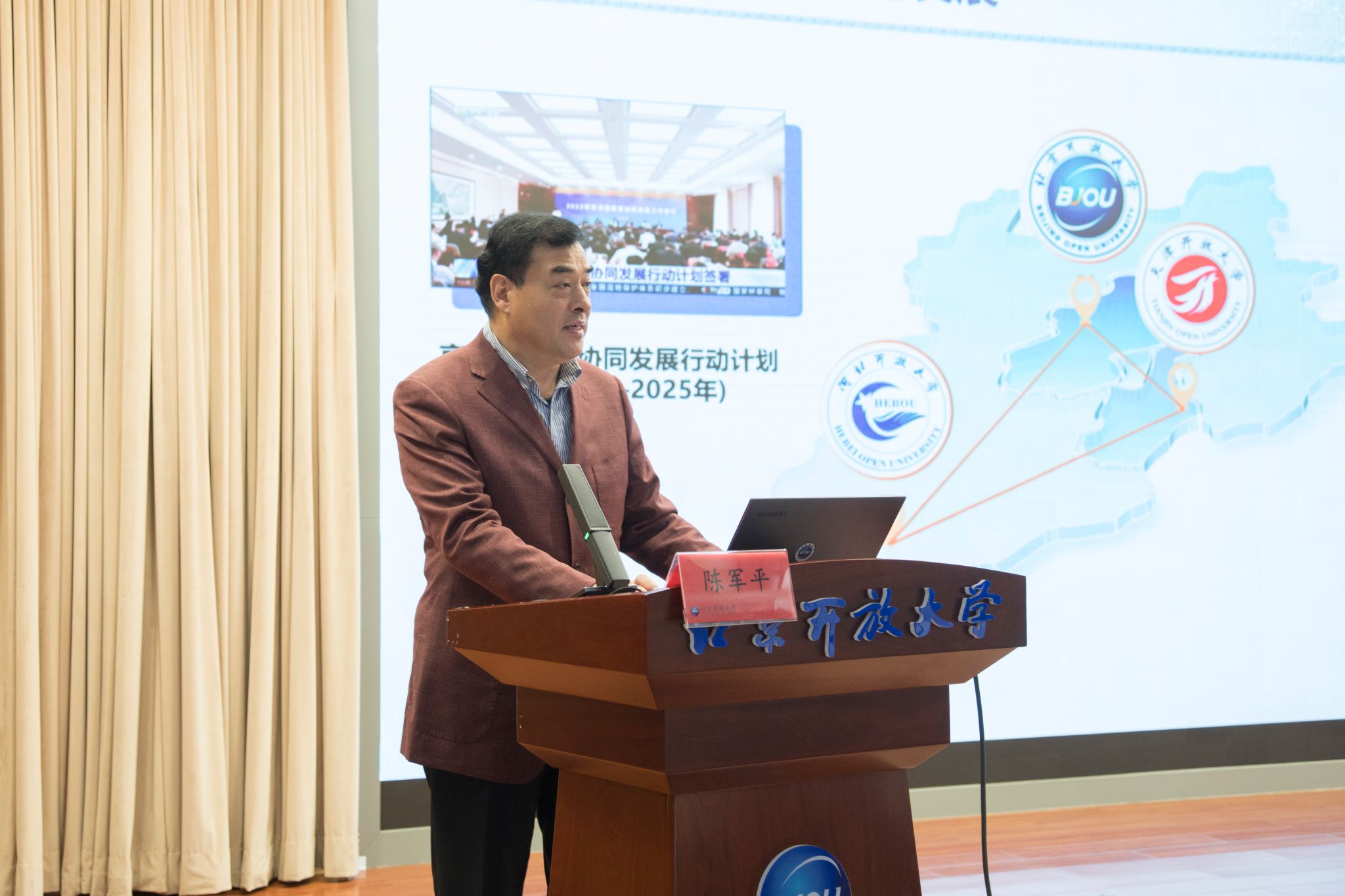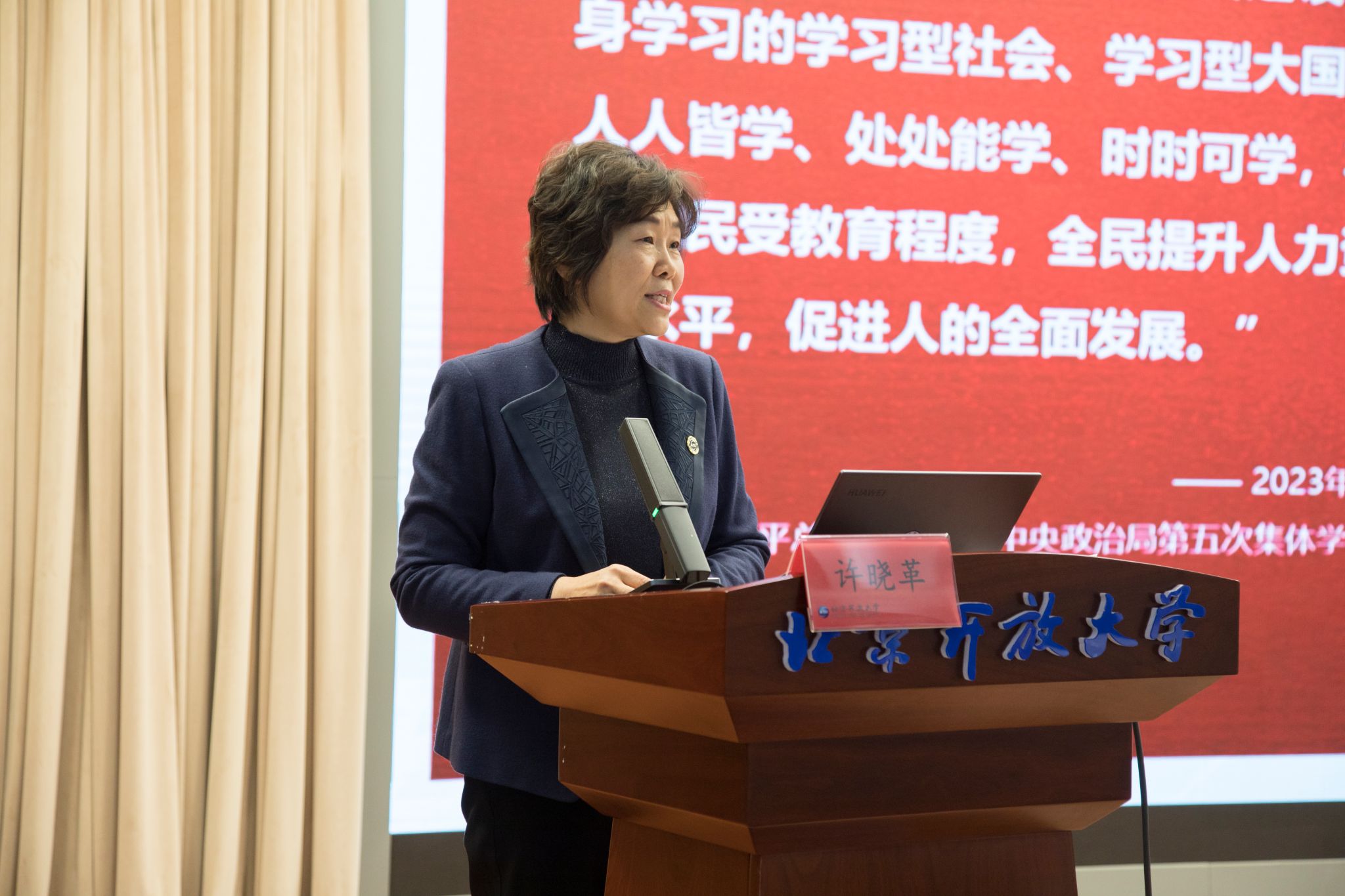 方中雄代表学校致辞。他指出,党的二十大报告提出推进教育科技人才一体化发展的战略布局,吹响了加快建设教育强国的号角。习近平总书记强调“推进教育数字化,建设全民终身学习的学习型社会、学习型大国”“深入实施国家教育数字化战略,扩大优质教育资源受益面,提升终身学习公共服务水平”,既对终身教育提出了新要求新挑战,又为终身教育高质量发展提供了根本遵循,指明了前进方向。他指出,面对新形势、新任务、新机遇、新挑战,伟德bv国际体育将同开放大学系统一起努力,坚持以习近平新时代中国特色社会主义思想为指导,牢牢把握教育的政治属性、人民属性、战略属性,为党育人、为国育才,进一步全面深化教育教学改革,为加快建设高质量终身教育体系、服务教育强国建设和京津冀协同发展贡献力量。