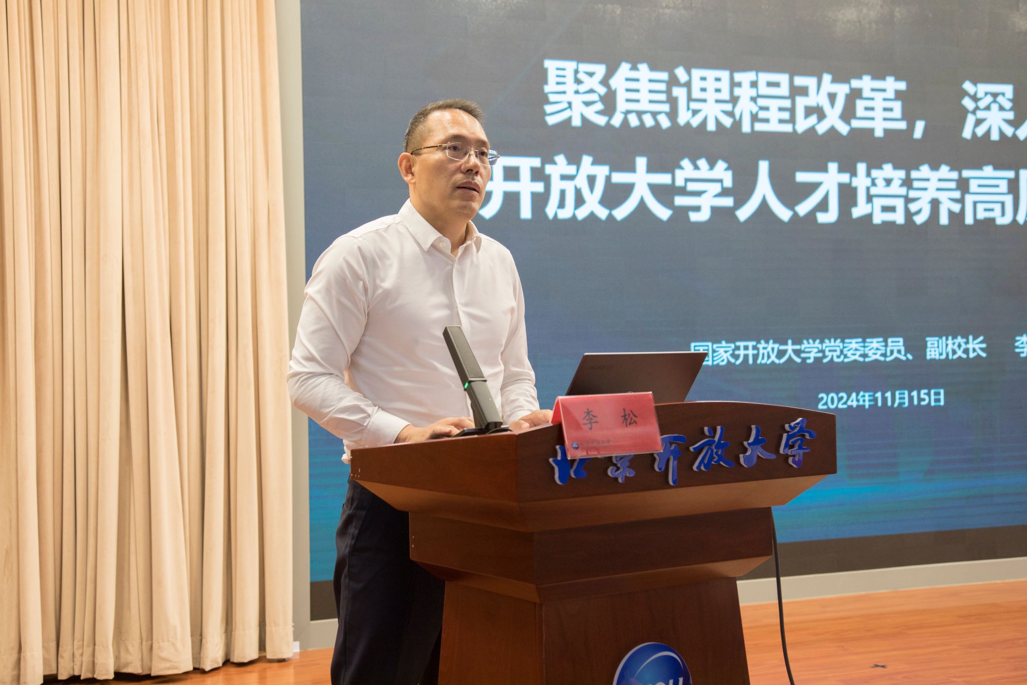 李松对开放大学人才培养高质量发展的内涵要求进行了深入分析,从把握立德树人根本任务、以数智赋能课程建设和教育教学改革、协同推进全国开放大学课程改革一盘棋、探索全方位、立体化的个性化课程评价等方面,探讨了以课程改革牵引人才培养质量提升的实践路径,为共同谱写中国特色世界一流开放大学建设的新篇章提供思路。