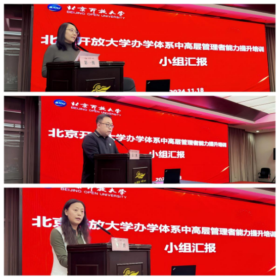 两天时间里,学员们认真聆听专家的精彩报告,围绕从全国教育大会精神谈开放教育发展,如何成为一个好的管理者,数字化时代对开放教育发展的思考等问题展开讨论,分享心得体会,为开放教育发展建言献策,充分展现了开放大学管理者的良好形象。顺义分校党支部书记、常务副校长田杰,平谷分校副校长赵国玲,昌平分校副校长郭鹏飞分别代表三个讨论组,分享了本组关于如何提升管理能力,推动数字时代开放教育发展的经验和思考。