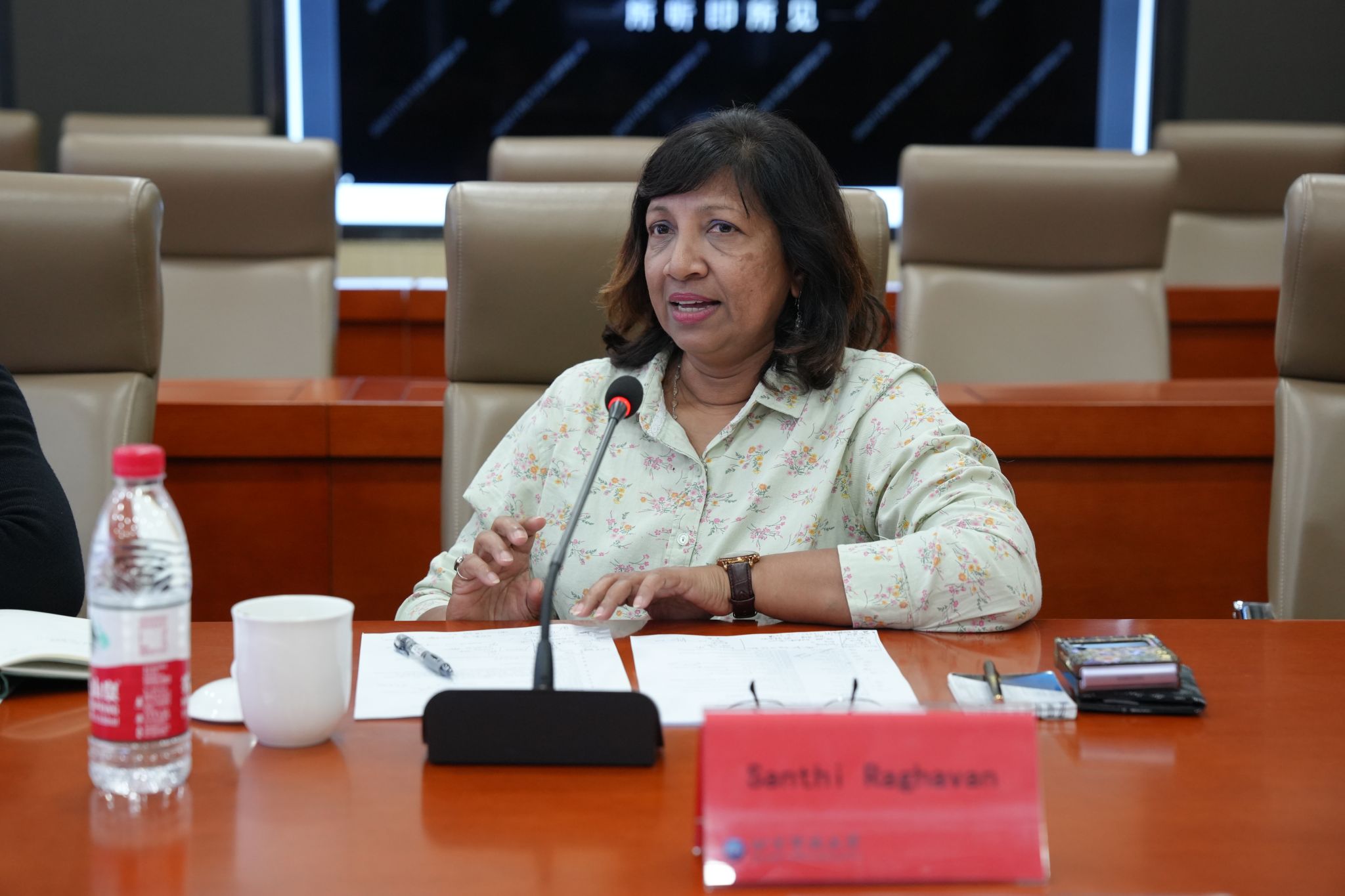 11月19日下午,马来西亚开放大学(OUM)副校长桑蒂•格拉万女士(Santhi Raghavan)一行来校交流访问。校党委副书记殷文生及相关工作人员参加了座谈交流。会议由科研外事处张琳琳处长主持。