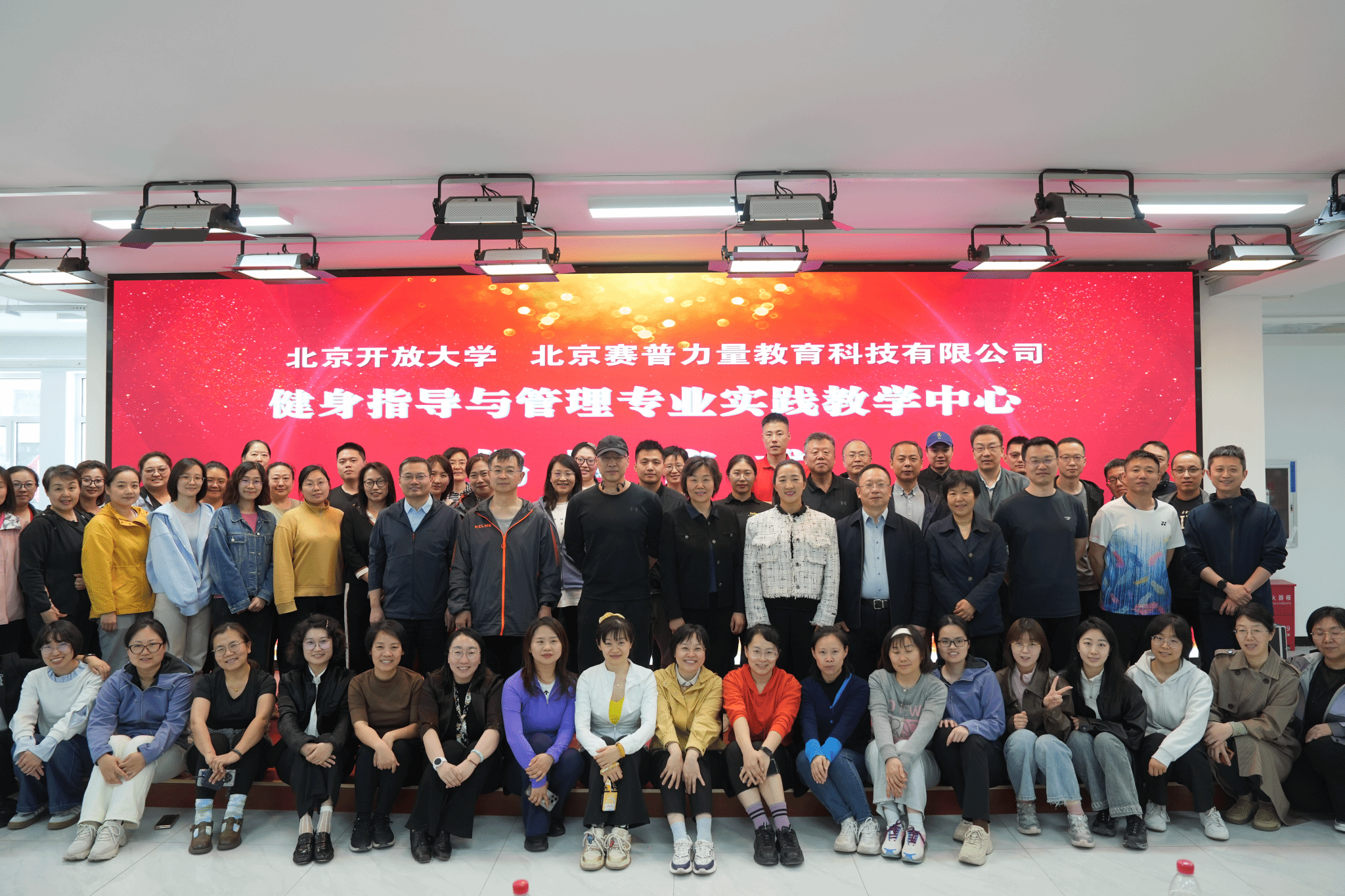 为加快推进学校转型发展,落实健康中国战略,着力提升终身学习公共服务水平,学校党委决定由直属学院负责与北京赛普力量教育科技有限公司共建健身指导与管理专业实践教学中心。4月25日下午,该实践教学中心揭牌仪式在白塔庵校区举行。伟德bv国际体育党委副书记、校长许晓革,北京赛普力量教育科技有限公司创始人、总经理刘倩,联合创始人、副总经理魏强,伟德bv国际体育党委副书记殷文生,党委委员、副校长赵军,党委委员、副校长王月海等出席活动。来自校内各部门参加首期体验课的老师共计80余人参加了活动。仪式由直属学院党支部书记孙宏辉主持。