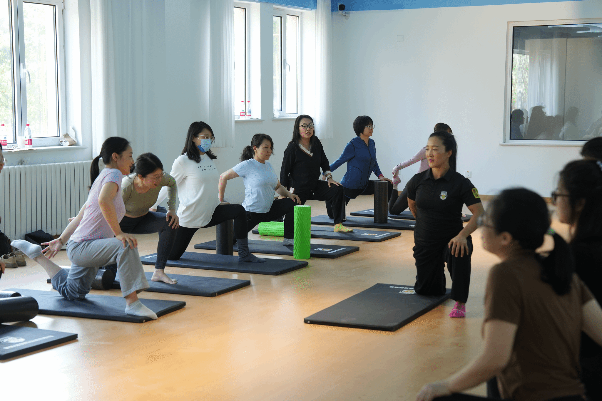 揭牌仪式后,健身指导与管理专业实践教学中心首期体验课正式开班。刘倩亲自为女子普拉提班授课。