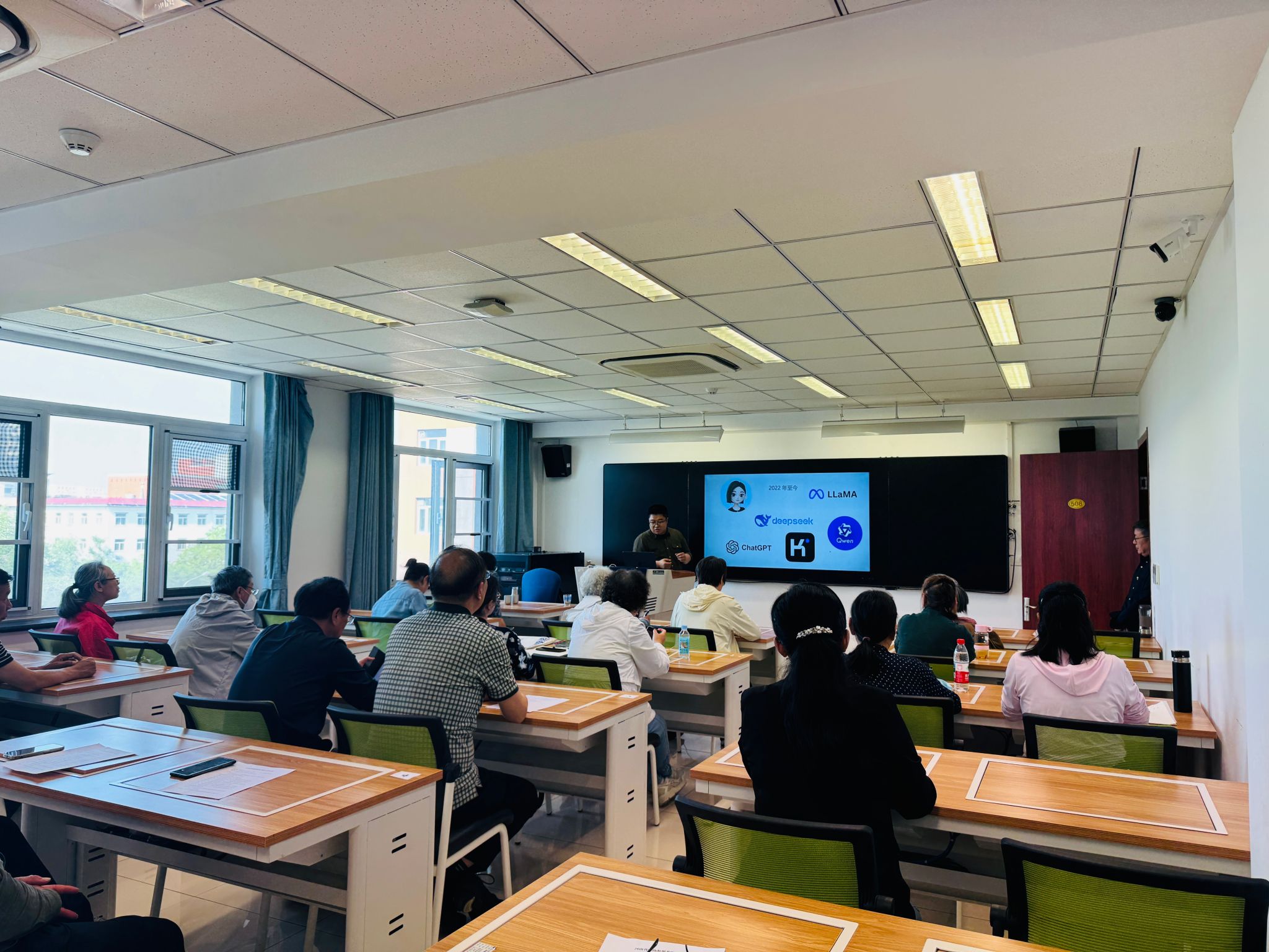 考察团首先走进《玩转智能工具 享受智慧生活》老年大学课堂,沉浸式体验人工智能与摄影相结合的双师教学场景。课堂上,张洪波老师为学员们讲解了摄影构图等基本理论与方法,史森老师则带领大家解锁了将人工智能豆包软件运用于影像创作新技能,使得老年人能够跨越数字鸿沟,紧跟时代步伐,学习并掌握互动设备学习手机摄影、AI处理照片等实用技能,生动展现了“科技助老”的创新教学模式。课堂上,考察团认真跟随老师教学,纷纷尝试使用人工智能制作生成摄影作品,跟随学员一起感受人工智能给生活带来的巨大便利。