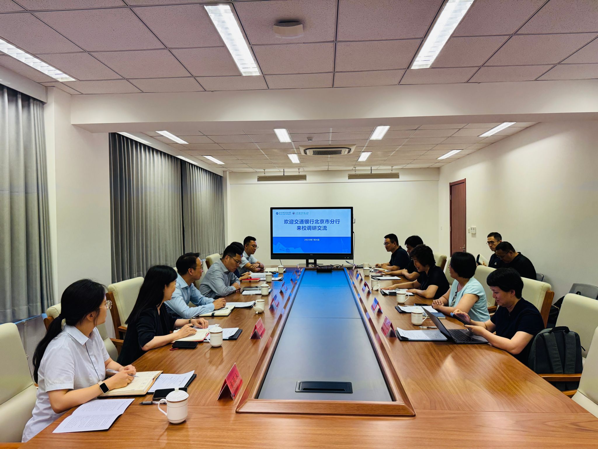 7月4日,交通银行北京市分行党委书记、行长唐朔一行赴伟德官网西直门校区进行专题调研交流。伟德bv国际体育党委副书记、校长许晓革,副校长张晓红出席。