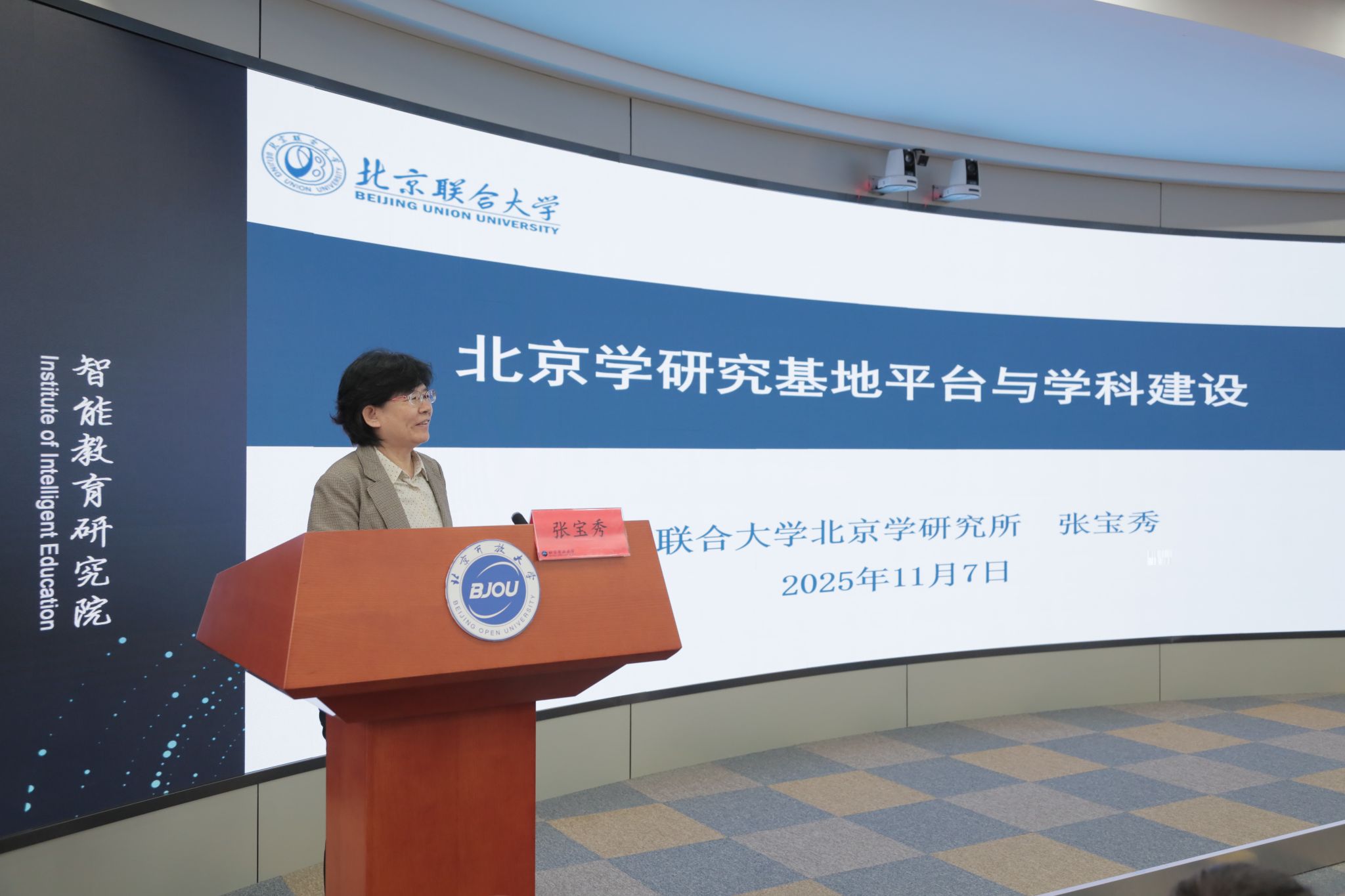 在“他山之玉”环节,四位校外基地专家围绕基地建设的关键议题进行了深度分享。北京联合大学北京学研究所(北京学研究基地)首席专家张宝秀教授详细介绍了北京学研究基地秉持“立足北京、研究北京、服务北京”的宗旨,构建了以“北京学”高精尖学科为核心的协同创新体系,并阐述了基地在汇聚校内外研究力量、打造品牌学术活动以及推动研究成果服务社会决策等方面的成功实践。