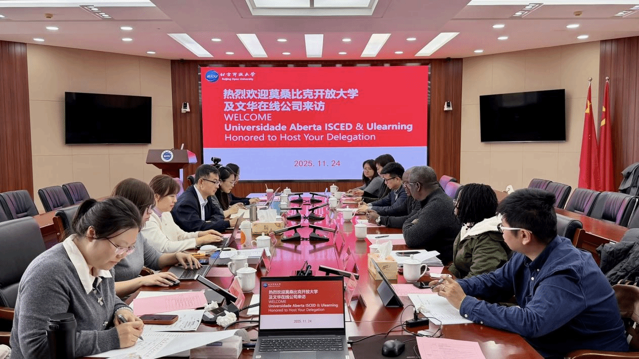 在交流环节,学校相关科室代表分别就学校整体发展概况、国际合作情况及数字化办学实践作了系统介绍。莫桑比克开放大学董事威士顿·马查查先生随后详细阐述了该校办学特色与发展诉求。基于前期沟通基础,双方围绕后续合作路径展开务实讨论,初步达成以下共识:成立联合工作组,建立常态化沟通机制;以课程资源共享为优先方向,启动试点合作;规划双向交流计划,推动人员互访与经验共享。