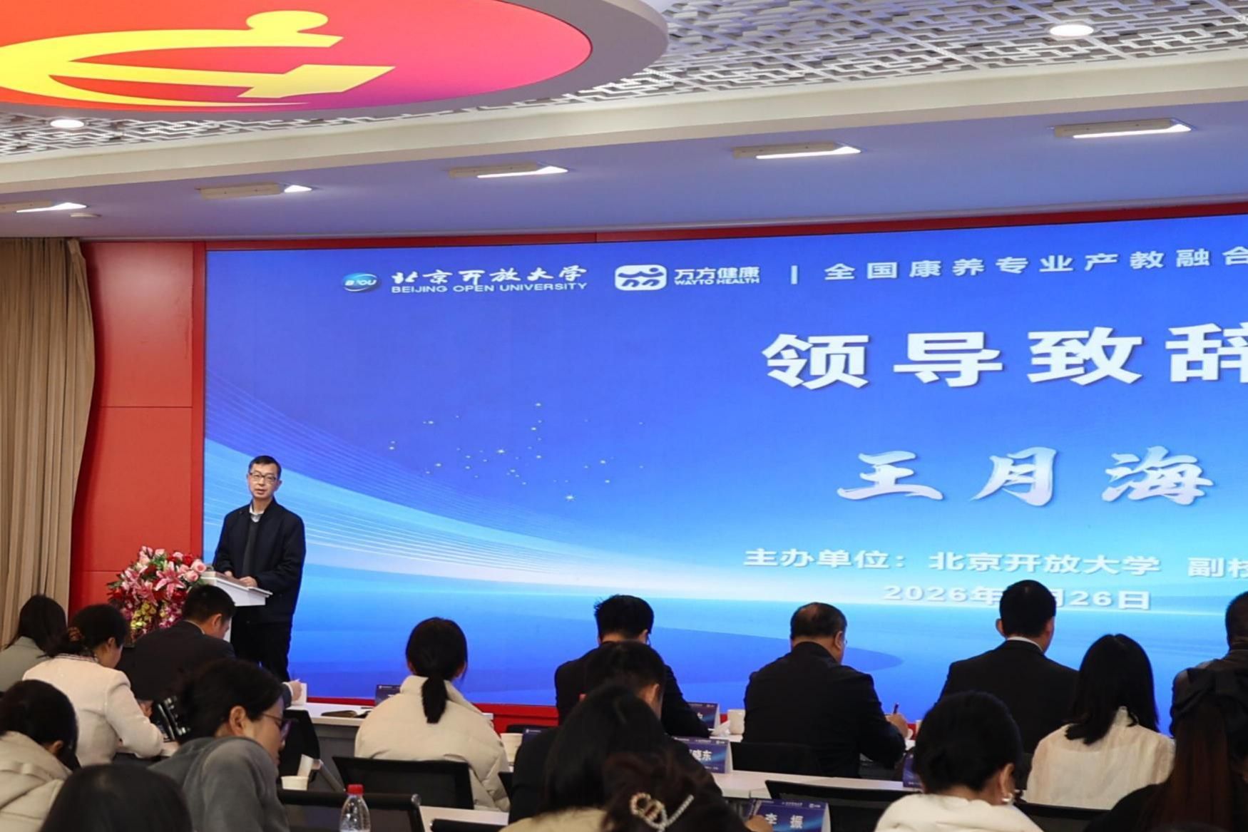 王月海代表学校致辞,介绍了学校针对康养领域,已构建起以北京老年开放大学为龙头、覆盖 4200 余家单位的四级办学体系,打造 5 万多分钟优质课程资源库及多个全国终身学习品牌项目。他表示,本次研修班是学校深化产教融合的重要实践,通过“政策引领-实践研学-赛教融合-成果共创”的闭环设计,依托校企协同、数字赋能、成果转化三大路径,助力构建康养人才培养新生态,未来,学校将持续发挥开放办学优势,推动康养教育资源共建共享。