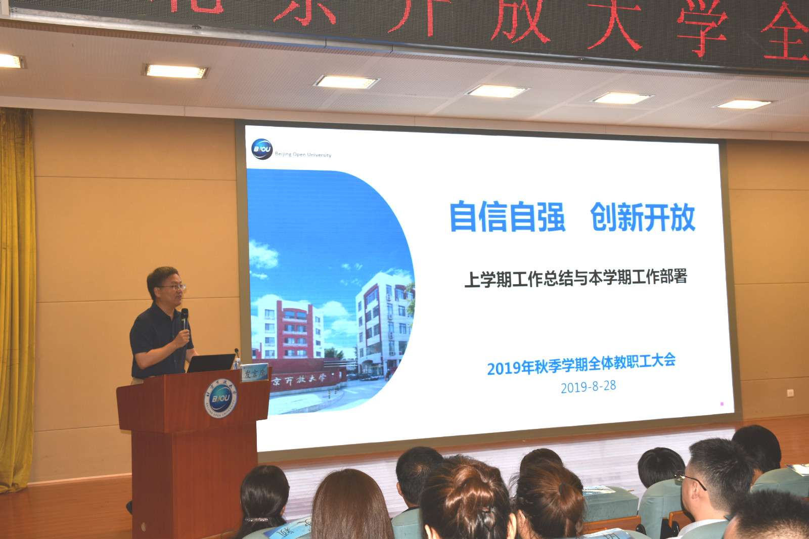 褚校长在安排本学期重点工作时强调,全体教职工要进一步提高政治站位,紧紧围绕北京“四个中心”城市功能定位和市委教育工委、市教委的要求,凝心聚力服务首都学习型城市建设,加紧实现非学历教育和学历教育并重、融通的转型发展,开展公益性社会教育服务,优化课程与专业布局,加强统筹规划,提高管理水平。在加强党的建设、学历教育和非学历教育、信息化建设、人才队伍建设、干部队伍建设、科研与国际化建设和合作办学等各项工作中,继续保持稳中求进的总基调,以乐观进取的态度和积极主动的精神面貌,脚踏实地解决学校办学中遇到的困难和问题,加快推进伟德bv国际体育的转型发展。