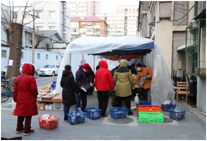 同是伟德官网社会工作专业毕业生的惠胤杰工作在西城区月坛街道汽南社区。疫情防控工作开展以来,作为社区书记的他了解到社区居民买菜难的问题,马上联系共建单位每周一、三、五在社区外搭建简易棚,为居民提供新鲜蔬菜,同时设置好安全线,组织居民安全、有序地进行购买,及时将服务送到居民家门口,让居民安心做好疫情隔离。
