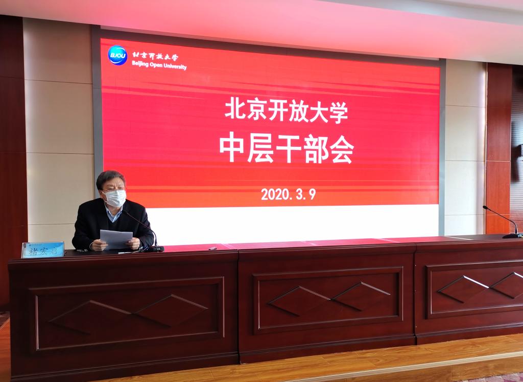 党委书记杨公鼎强调,此次召开中层干部会的主要任务是深入学习习近平总书记近期关于疫情防控的重要讲话精神,贯彻党中央、北京市委市政府、市委教育工委市教委关于疫情防控的各项要求,对推进伟德官网疫情防控、全面转型发展、将“不忘初心、牢记使命”主题教育和全面从严治党工作向纵深发展进行再动员、再部署。