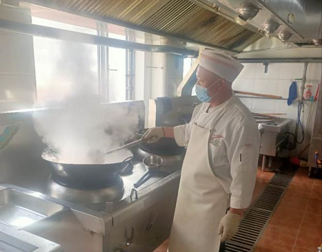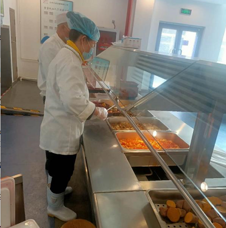 通过每天现场巡查食堂环境卫生、操作流程及安全情况,在加工、售卖、储存、留样等环节严格执行食品安全规范,坚决防止“病从口入”。食堂工作人员每天严格进行两次体温检测和身体情况筛查,确保健康上岗。