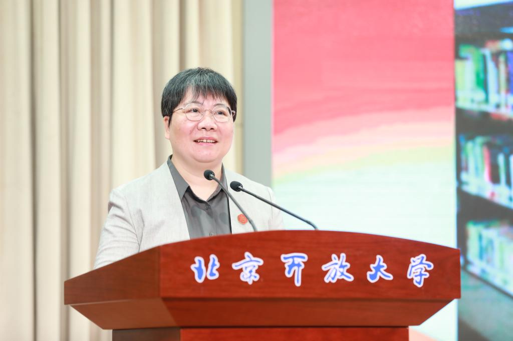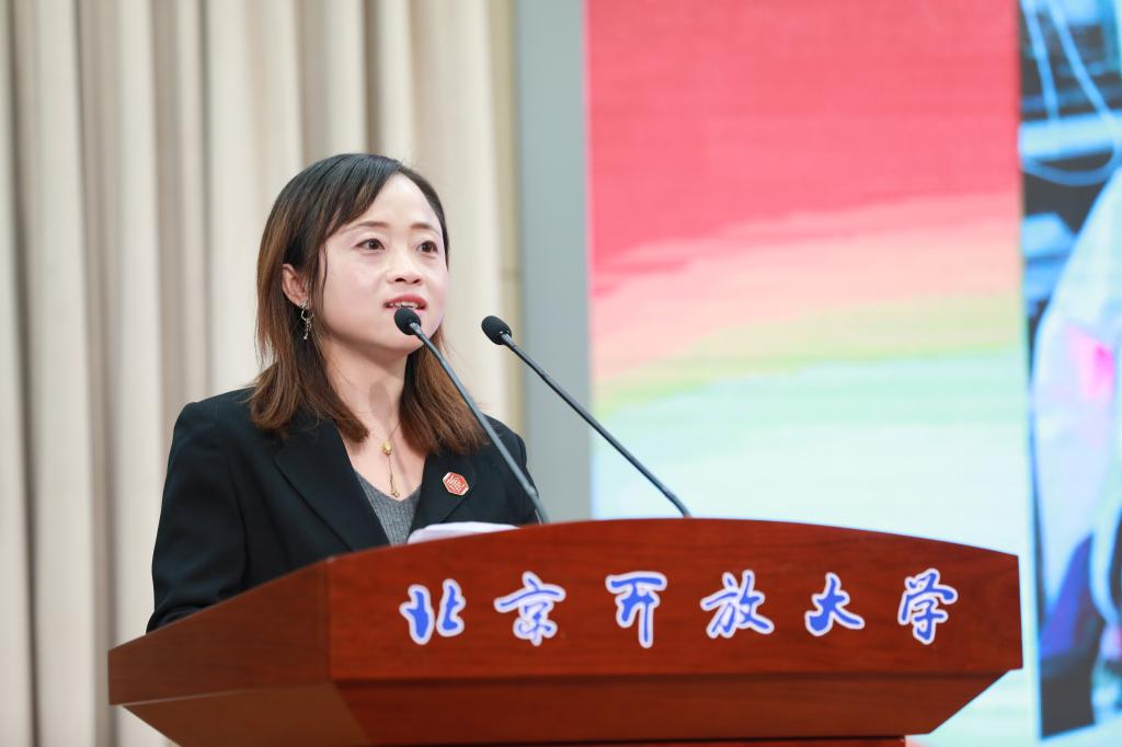商学院李哲教授作为教师代表在会上发言。她深情的回顾了自己从事开放教育的心路历程,她表示,作为一名开放大学的老师,真心二字,就是对立德树人的责任和对开放教育事业的热爱。发展融合教育、终身学习,是时代对开放教育的挑战,也是对开放大学教师的挑战。走向智能化时代,开放大学教师将努力拥抱新技术、拓展新能力、迎接新变化,这是开放大学不变的基因传承。