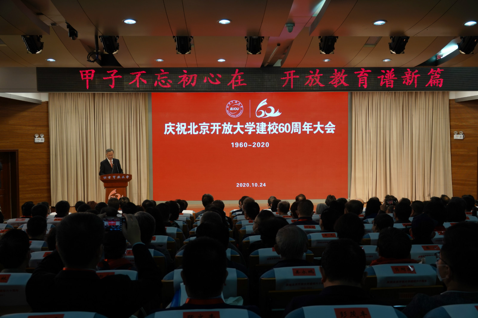 甲子不忘初心在,开放教育谱新篇。10月24日上午,伟德bv国际体育举行建校六十周年庆祝大会。北京市副市长、市政府党组成员卢彦,国家开放大学党委书记、校长荆德刚,北京市教委一级巡视员黄侃出席大会。系统内兄弟学校代表、在京高校和兄弟单位代表、学校离退休老领导和老同志代表、系统分校代表、合作办学单位代表、校友代表及学校师生代表等参加大会。大会同步线上直播。校党委书记杨公鼎主持大会。