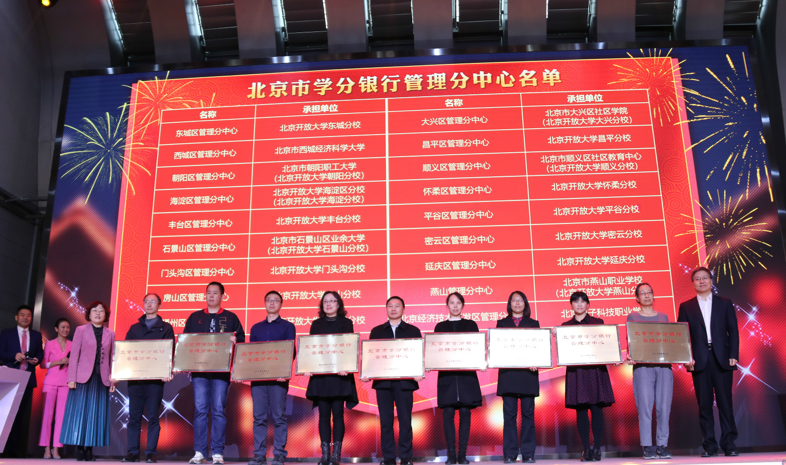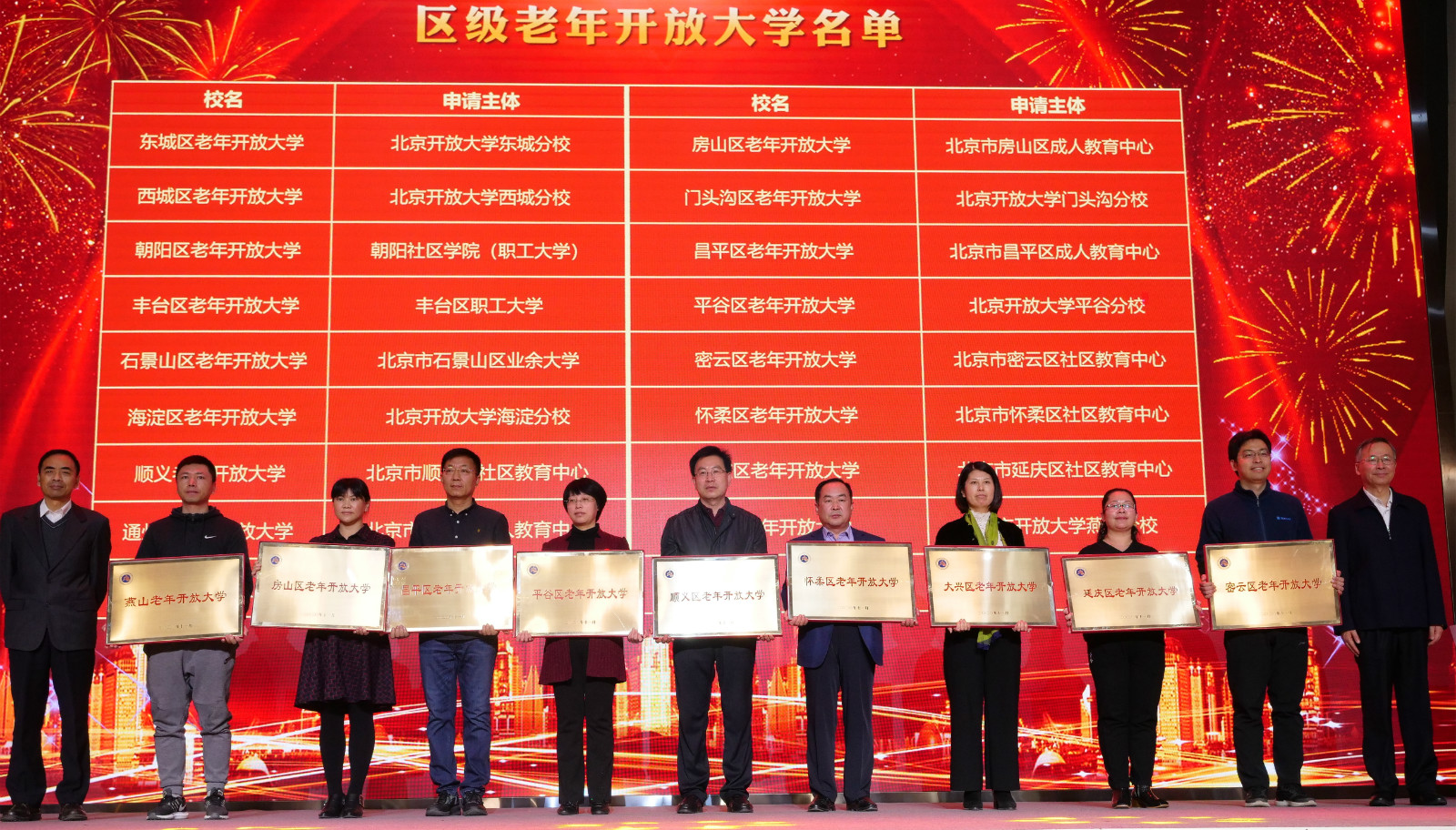 开幕式上,17家区级老年开放大学获授牌。这些区级老年开放大学的成立,标志着北京市老年教育工作迈上一个新的台阶。北京老年开放大学将充分发挥系统办学、信息技术和学历教育优势,进一步夯实市、区、街(乡)、居(村)四级办学体系建设,支持区级老年开放大学办学统筹和特色发展,不断推进教育教学改革,大力推进“教学下沉”,为老年人提供多样化、多层次、个性化的教育服务,切实把老年教育办到家门口,服务北京老龄社会建设。