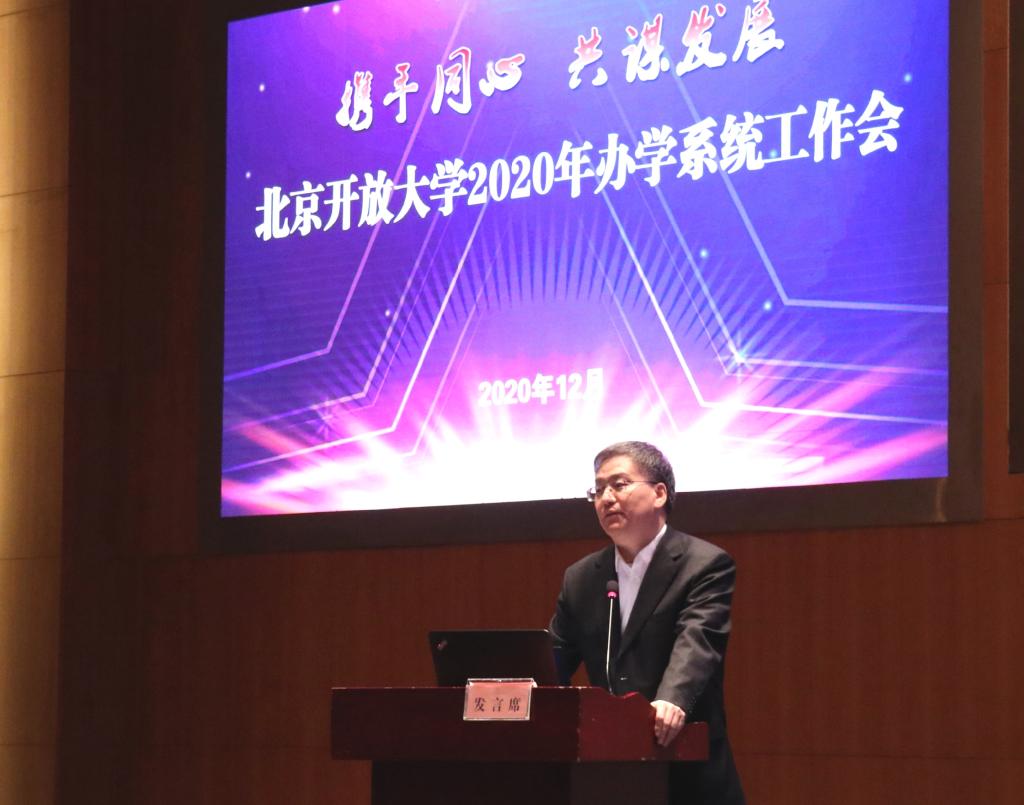 党委书记杨公鼎在致辞中强调,学校60 年办学历程,形成了统筹规划、分级办学、分级管理、分工协作的办学体系,初步构建了覆盖北京城乡的远程开放教育网络和市民终身学习服务体系。累计培养了学历继续教育毕业生57 万余人,非学历培训 700 万余人次,为促进首都终身学习体系和学习型城市建设做出了不可替代的贡献。杨书记表示,系统办学一直以来都是学校的独特优势与宝贵财富,要在新时期不断发扬光大。对于接下来的发展和面临的形势,杨书记提出要努力建好服务首都的新型大学,建好市民身边的平民大学,加快构建市民终身教育公共服务平台,建好终身学习的“立交桥”。依托系统,统筹发展全市开放教育、社区教育、老年教育和社会培训。以学分银行和学习成果认证为牵引,结合“1+X”证书制度试点工作,开展学分互认试点,促进非学历继续教育和学历继续教育融通,完善覆盖全市的终身学习服务体系。