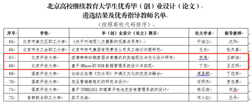 北京市教育委员会公布了2020年北京高校继续教育大学生优秀毕(创)业设计(论文)遴选结果(京教函[2020]616号),伟德官网共有2项毕业设计(论文)获评北京高校继续教育大学生优秀毕(创)业设计(论文),指导教师王新洁、王亚明荣获“优秀毕业设计(论文)指导教师”。伟德官网荣获优秀组织奖。