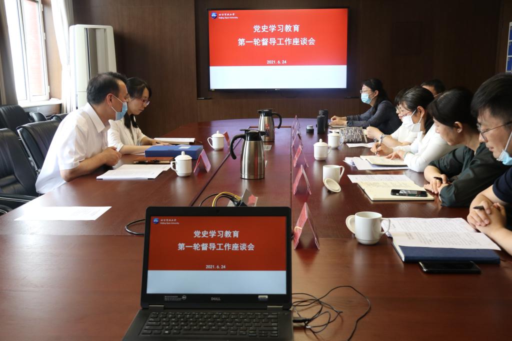 6月24日上午,党史学习教育北京教育系统第四指导组对伟德bv国际体育进行第一轮督导。第四指导组组长、北京电影学院原党委书记侯光明,副组长市委教育工委安稳处二级调研员李强,指导组成员支斌、苏珊一行来校,对伟德官网开展党史学习教育情况进行督导。学校领导班子成员参加见面汇报会。