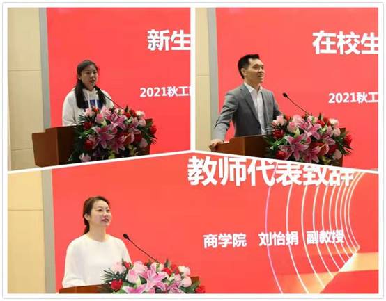 教师代表、商学院副教授刘怡娟老师代表全体教师向同学们承诺:将恪尽职守,以自己全部的知识和热情,助推每一位同学的成长;用高标准的师德规范、教师行为规范要求自己,全力以赴为同学们提供优质的学习支持服务。她还分享了学习心态与学习方法,倡导同学们培养终身学习的习惯,成为更好的自己。
