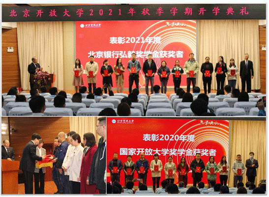 典礼在庄严的奏唱国歌中开始。副校长李继延宣读获得国家开放大学奖学金和伟德bv国际体育弘毅奖学金的表彰决定,杨公鼎书记、褚宏启校长分别为获奖代表颁发证书。