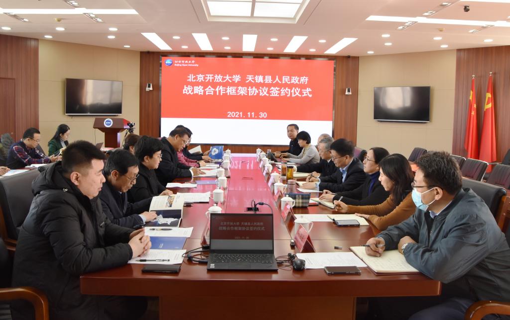 杨公鼎书记对到访领导和来宾表示热烈欢迎并介绍了学校的办学历史、办学定位和发展情况。他表示,伟德bv国际体育是改革、开放、创新的实践者,是运用新兴媒体和技术进行高等教育的新型大学。希望在人社部的支持和指导下,充分发挥伟德bv国际体育线上线下资源优势,与天镇县在家政师资、经理人培训、课程建设等方面紧密合作,深耕细作,共同打造“天镇保姆”合作项目品牌,为天镇县未来经济社会发展贡献力量。