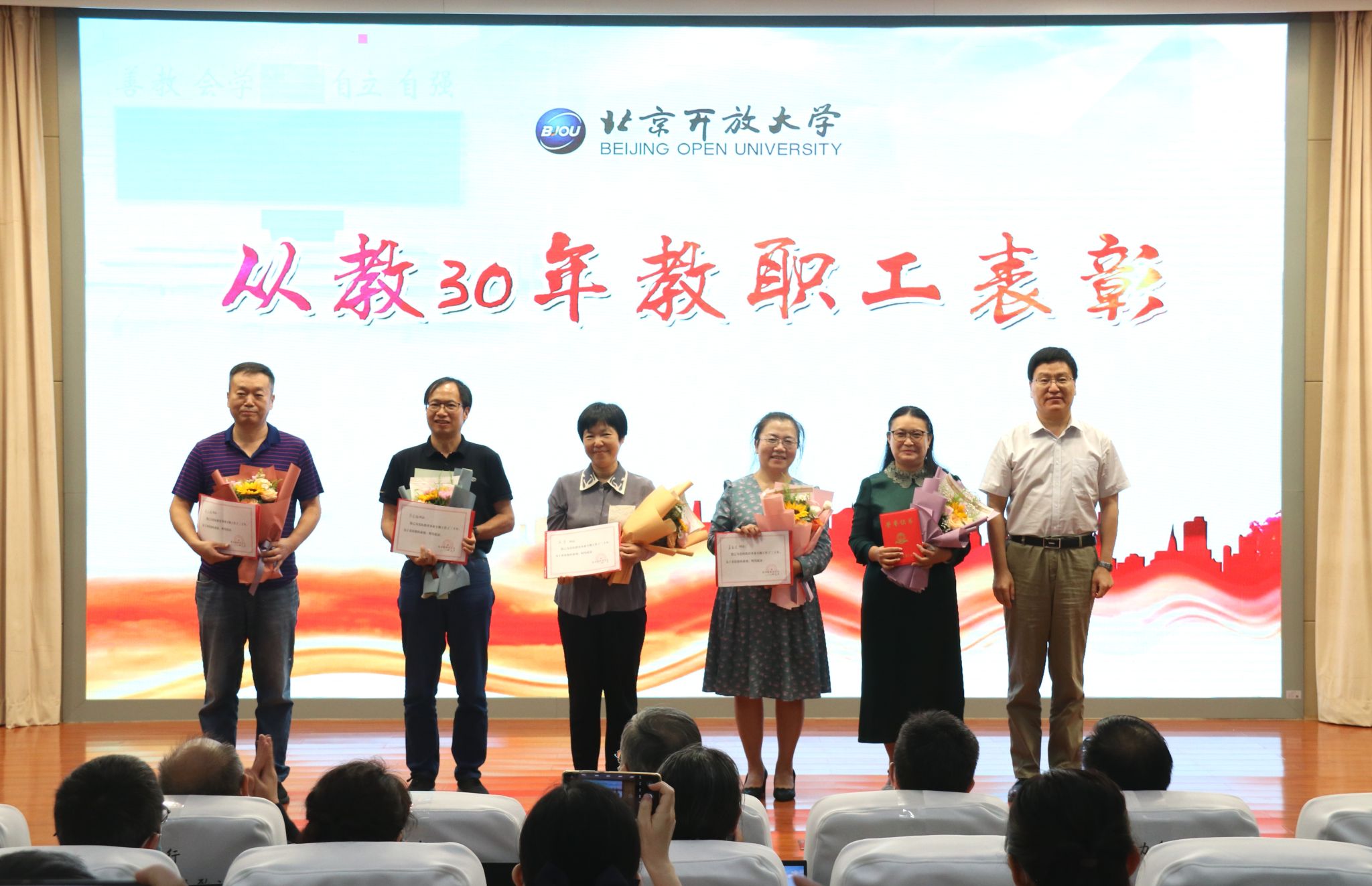 论坛后,举行了庆祝教师节表彰活动,分别对从教满30年教职工,2022年度国家开放大优秀教师、伟德bv国际体育系统优秀教师代表,第十七届北京市高等学校教学名师奖获得者、第五届北京市高等学校青年教学名师奖获得者进行了表彰。